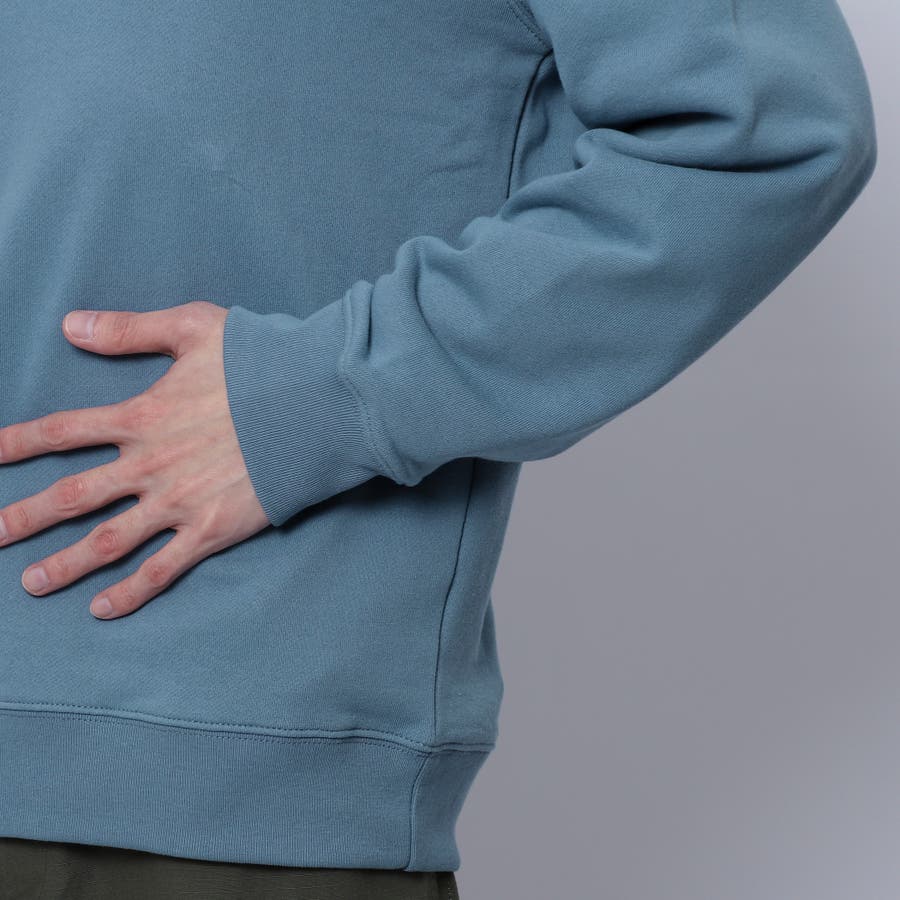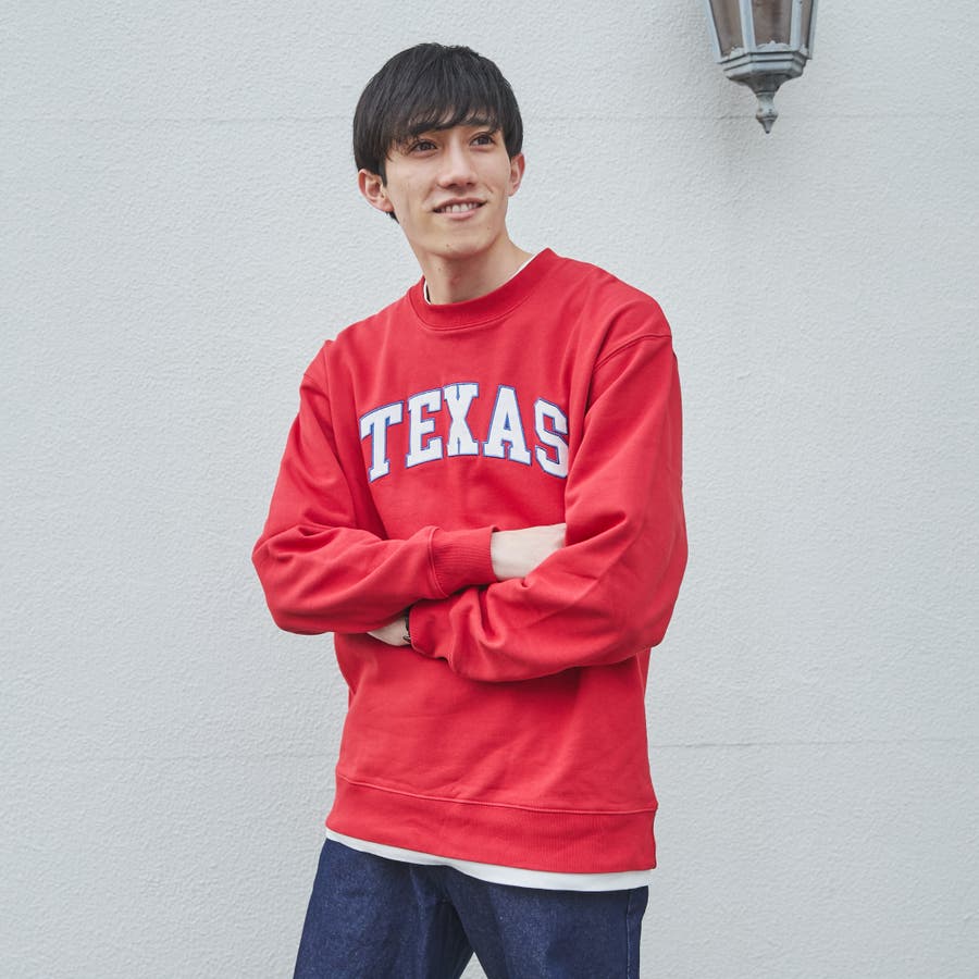 裏毛素材の程よい厚みのため、通年着まわすのに便利な生地感です。