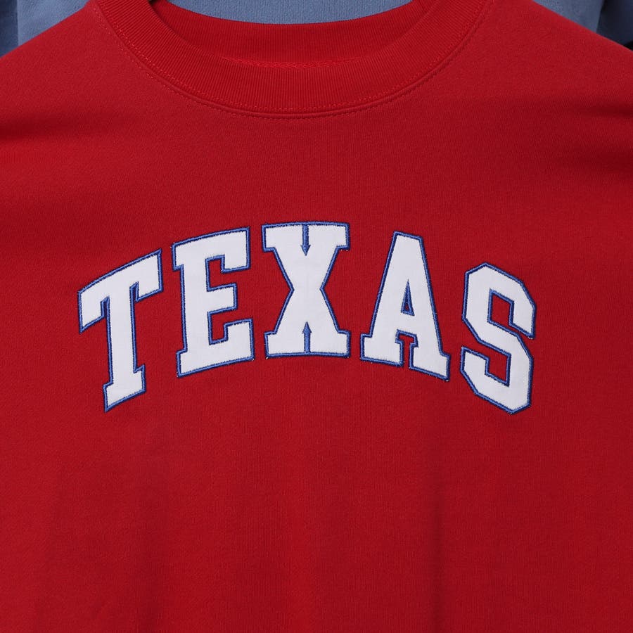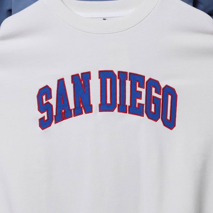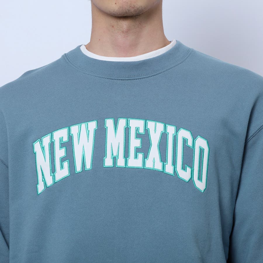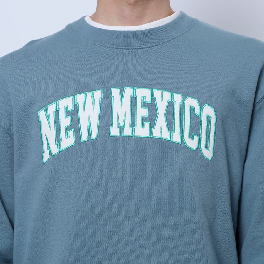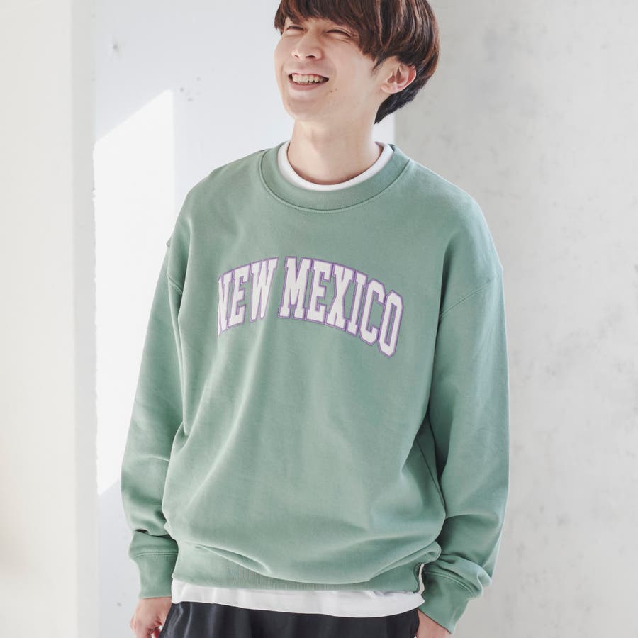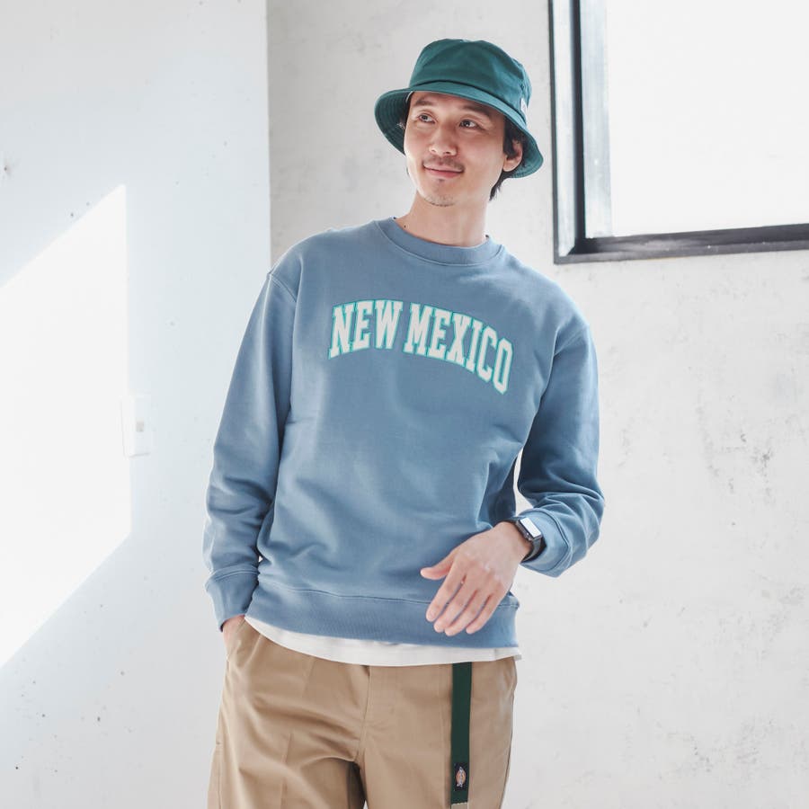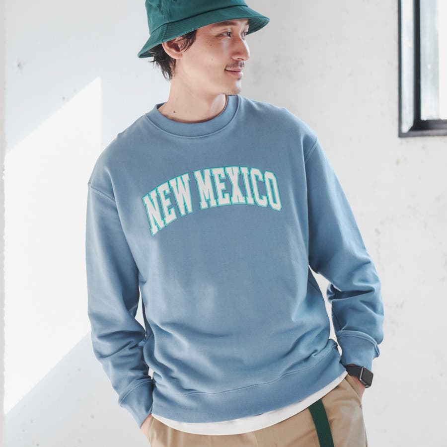 ワッペンロゴを胸元に大きくデザインしたクルーネックスウェット。