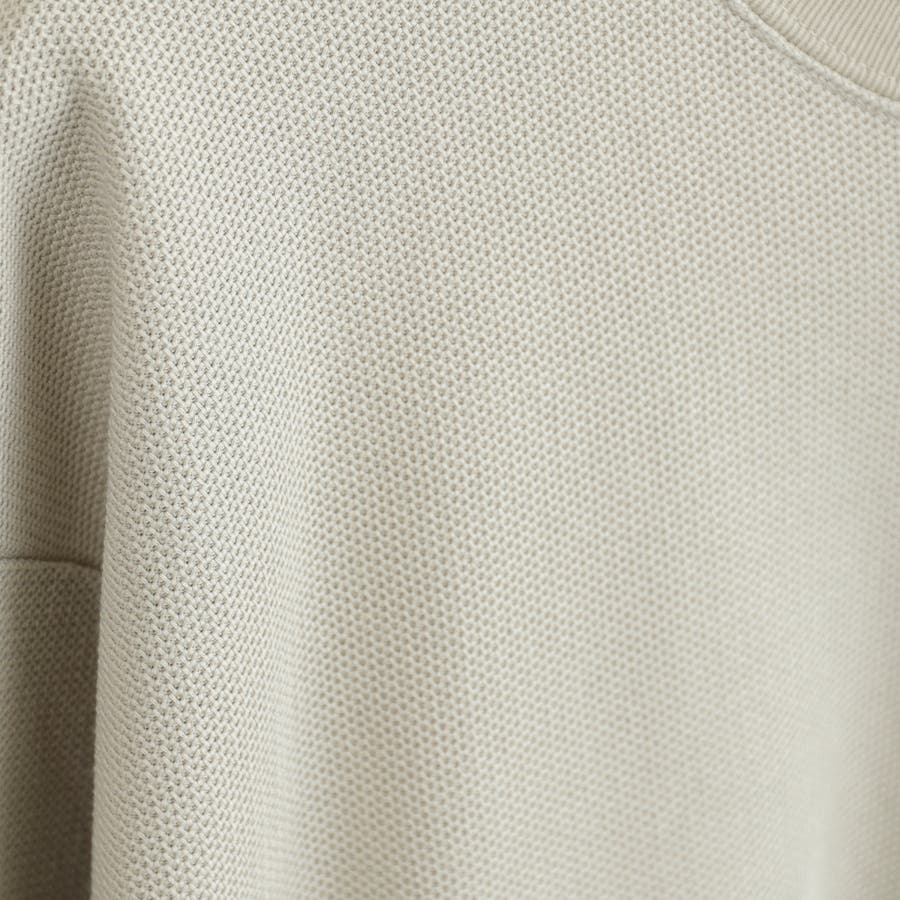 凹凸のある表面感で生地のハリと光沢が上品なので、1枚着としてはもちろん、インナーとしてもオススメです。