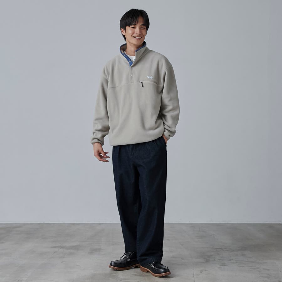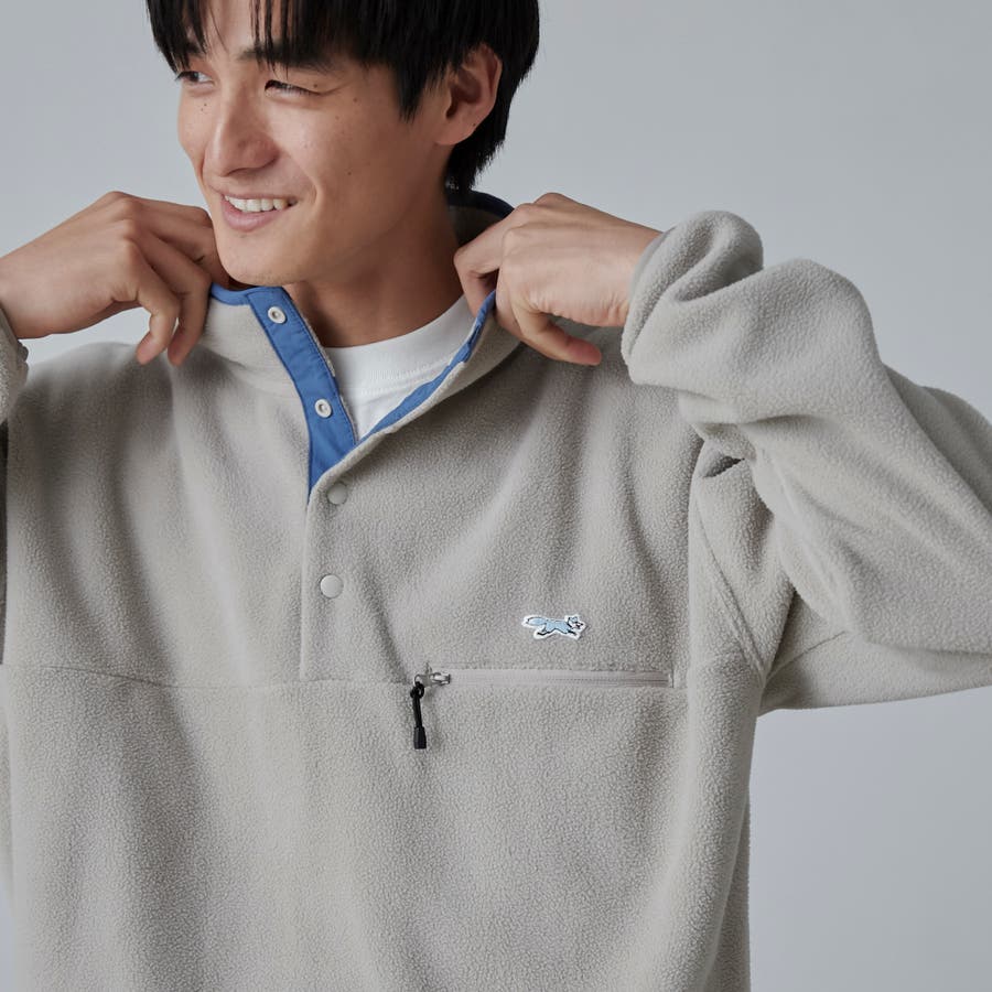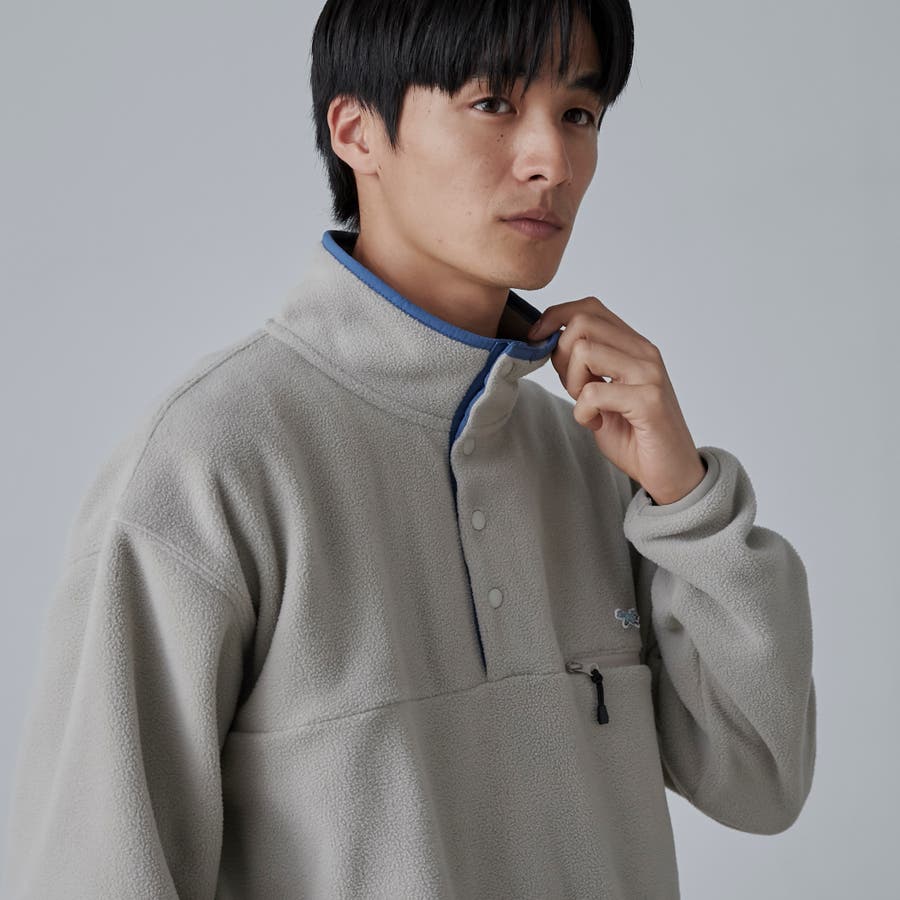今季の秋冬トレンドに欠かせないハーフスナップボタンのプルオーバーをフリース素材でデザイン。