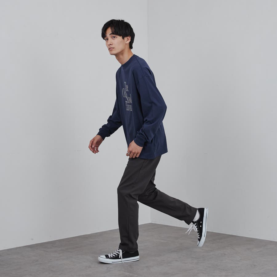 胸元に大きくロゴを配し、シンプルながら存在感のあるロンTEE。