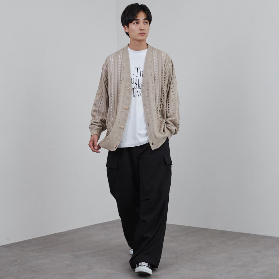 カーゴパンツを合わせてカジュアルな羽織りスタイルを楽しめます。