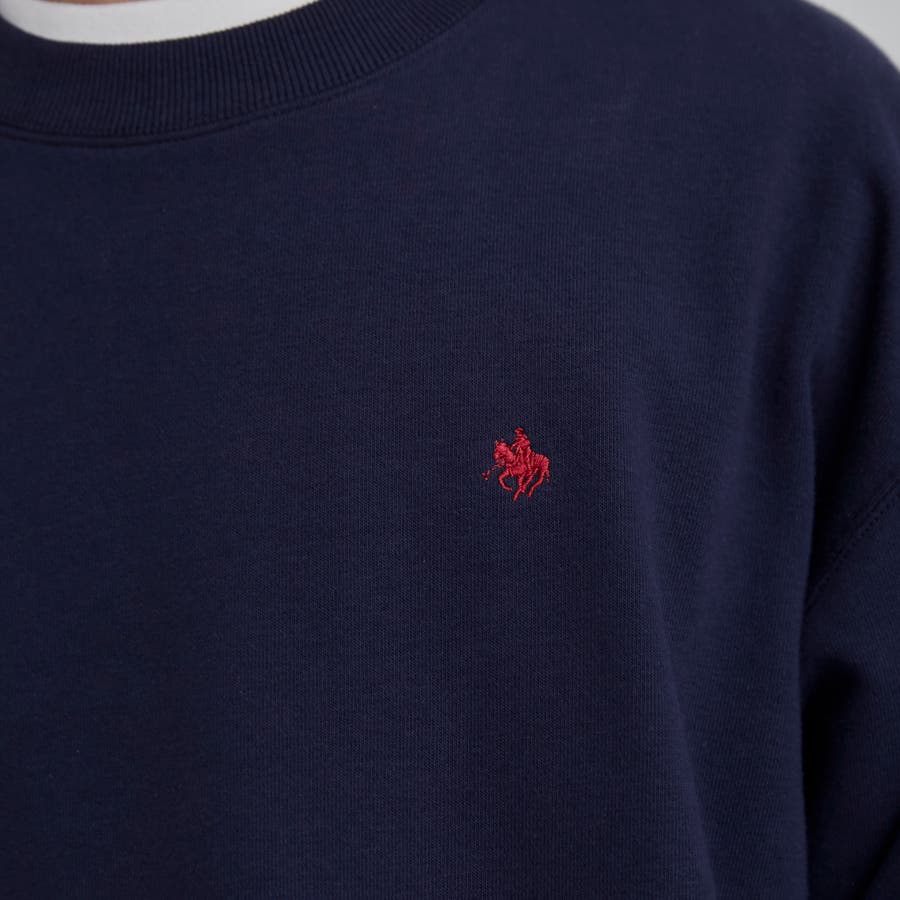 POLO BCSに別注したワンポイントのロゴ刺繍の配色が目を引くスウェット