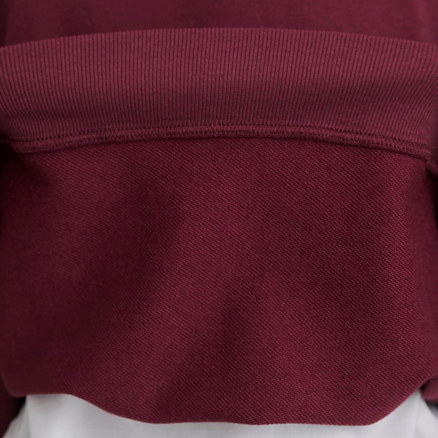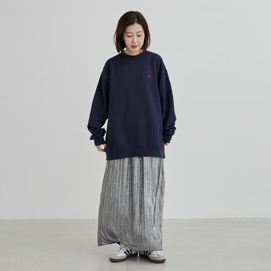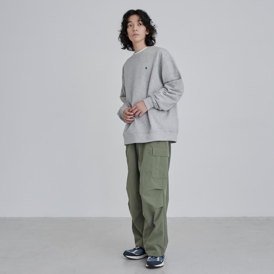 程よくゆったりとしたリラックス感のあるシルエットでありつつ、身頃の脇部分はリブ仕様になっておりルーズすぎないすっきりとした印象に。