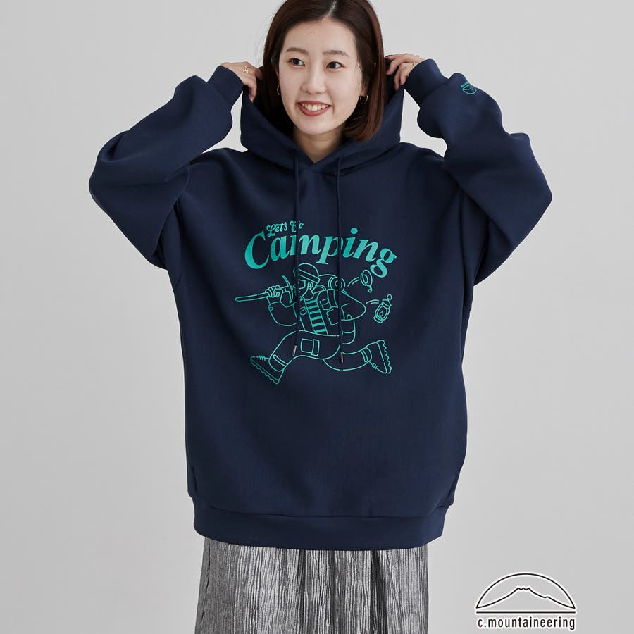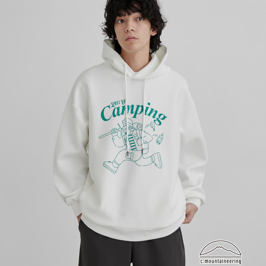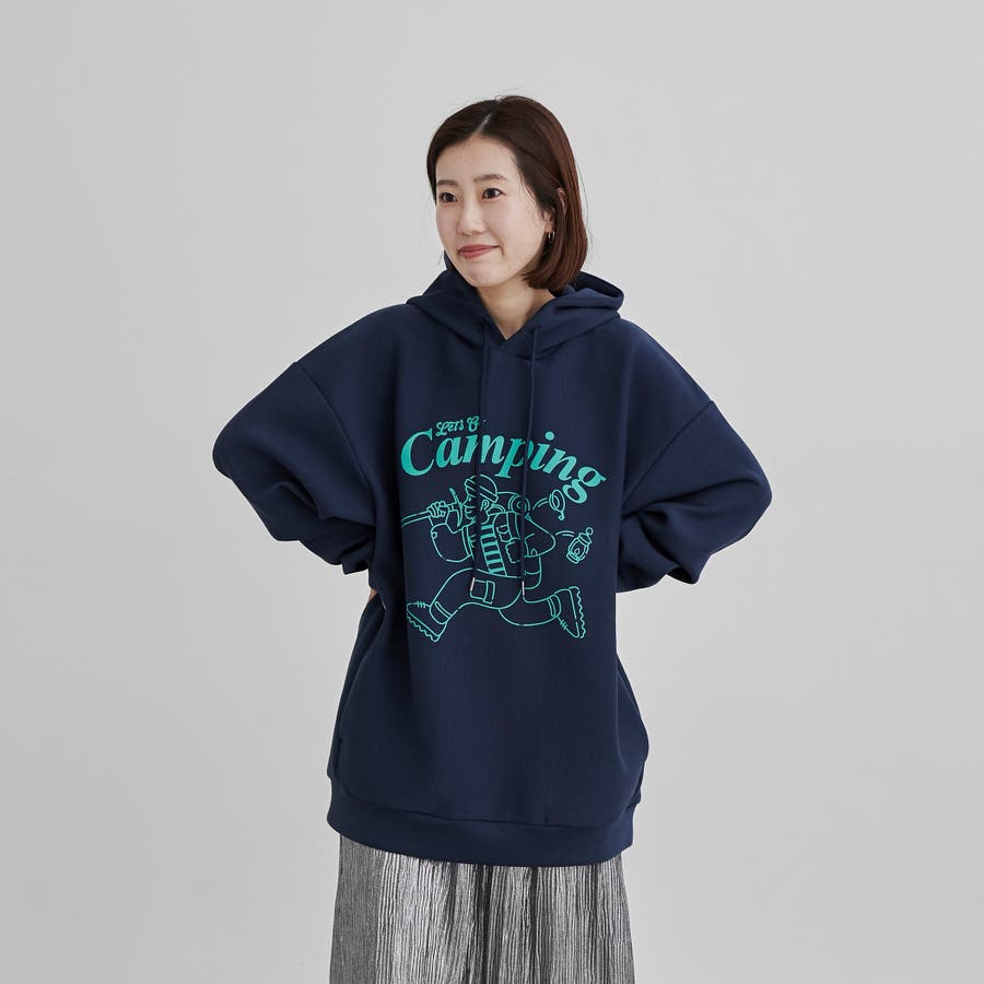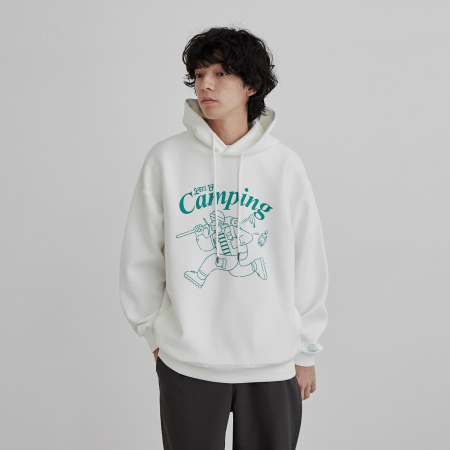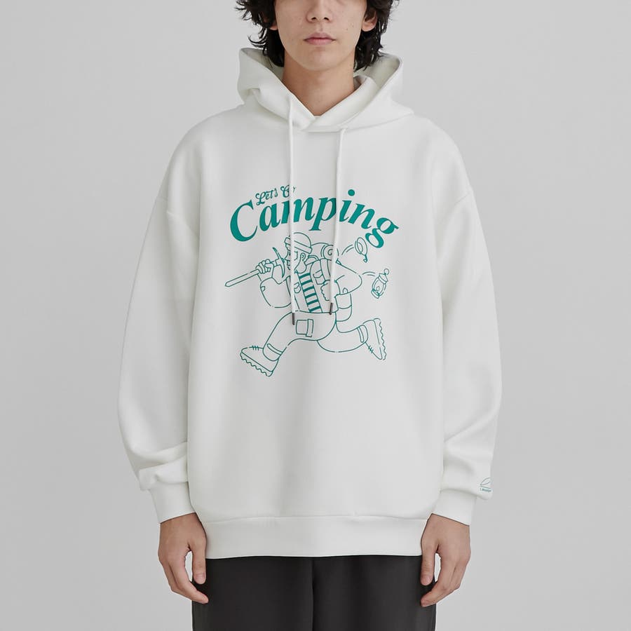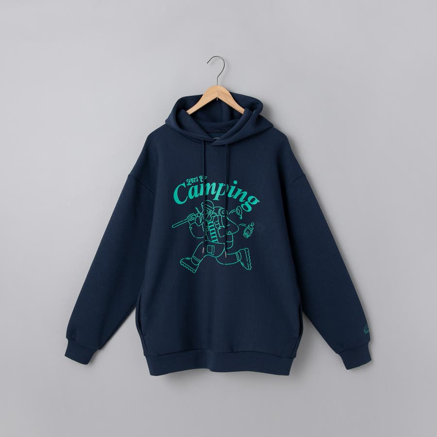 フロントにキャンプシーンを想起させるプリントを施したフーディプルオーバー。