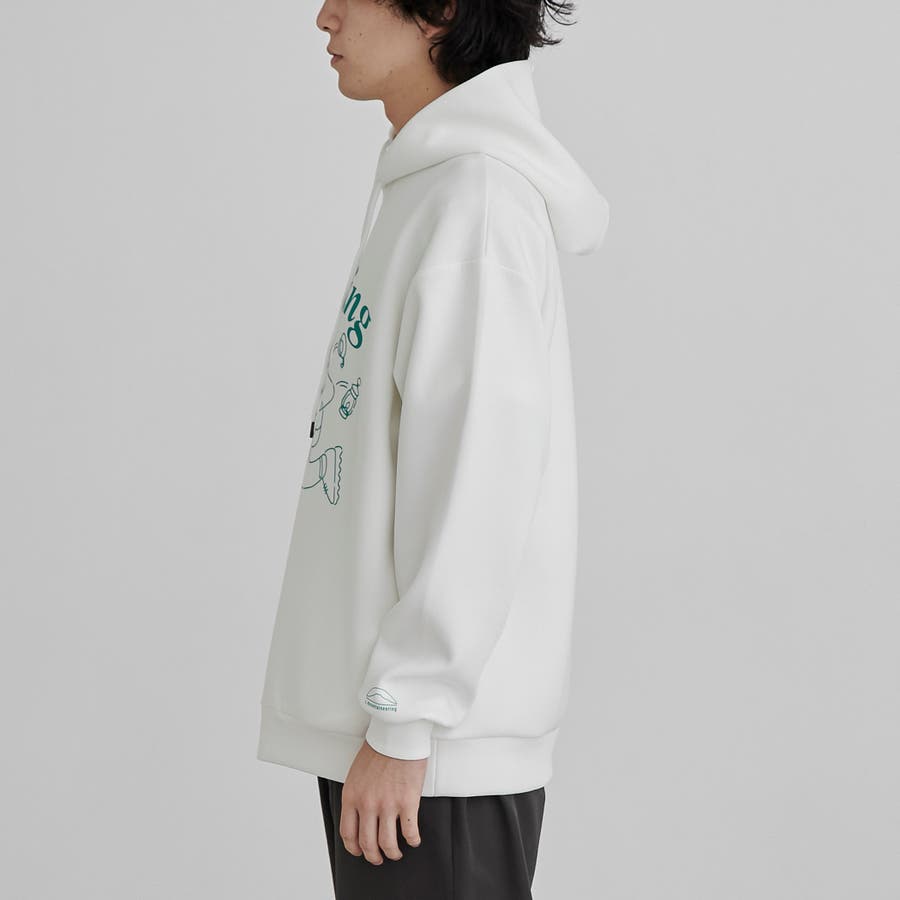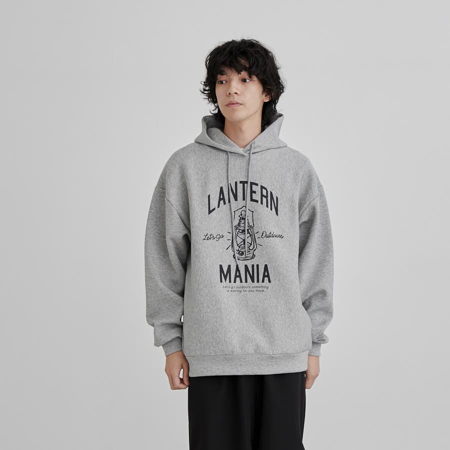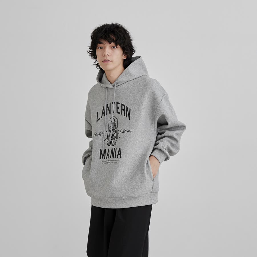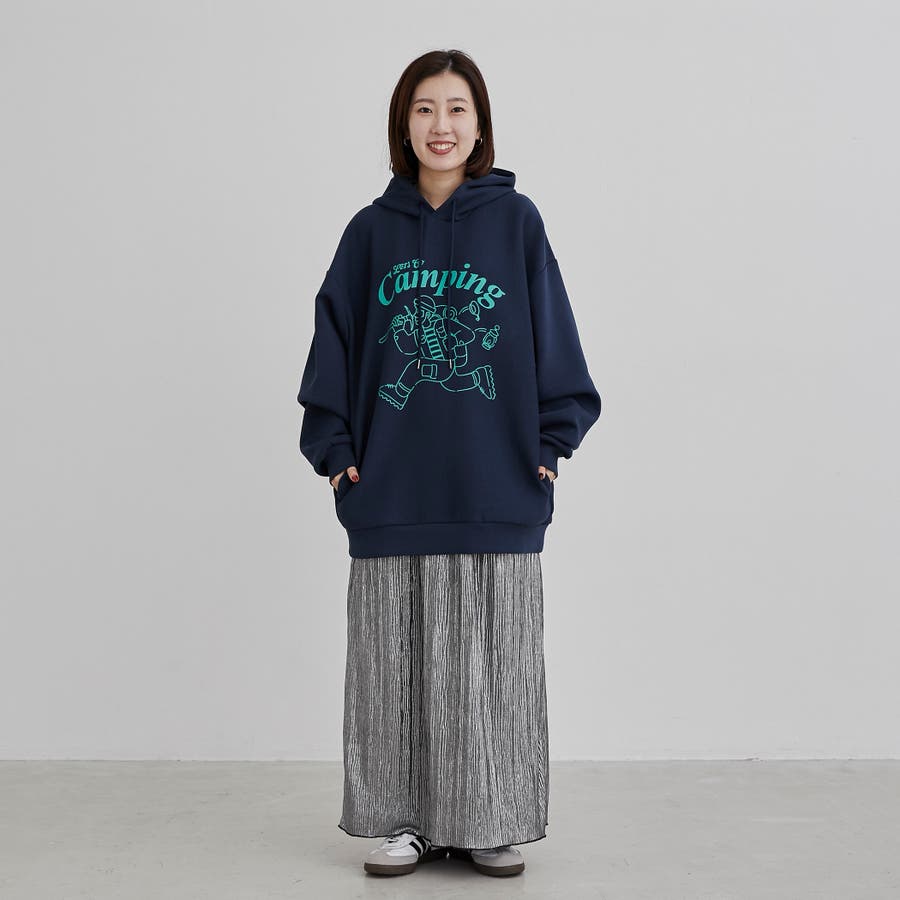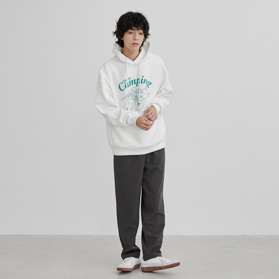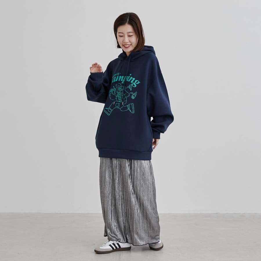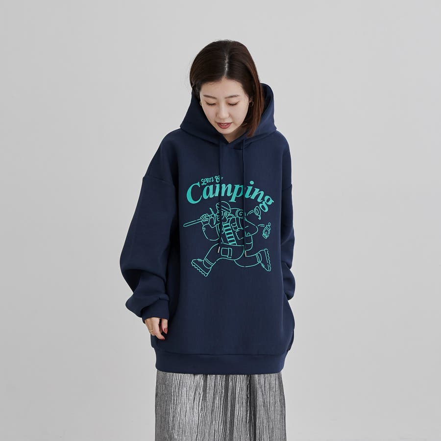 フロントにキャンプシーンを想起させるプリントを施したフーディプルオーバー。