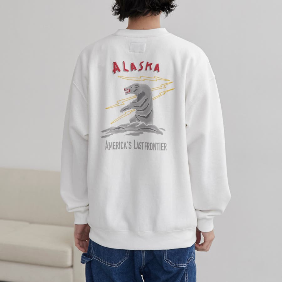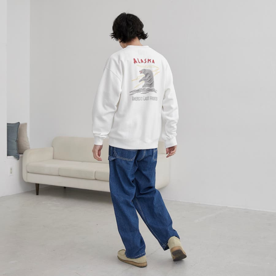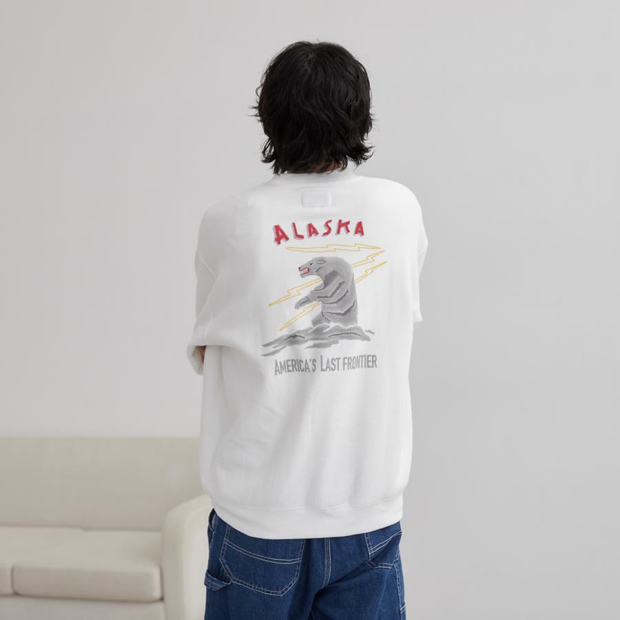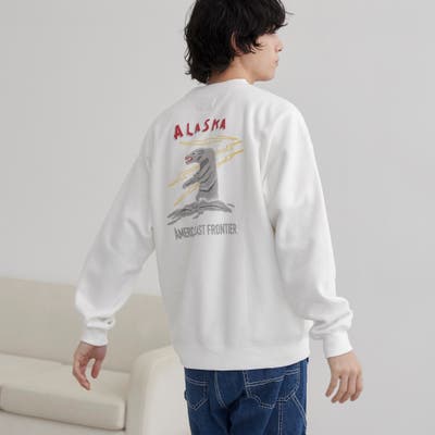 スーベニアジャケットをモチーフとしたプリントデザインのスウェット