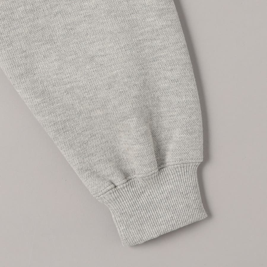 スウェットには珍しい鹿の子生地で仕上げ、暖かさと鹿の子らしい着やすさを併せ持つ素材も魅力。