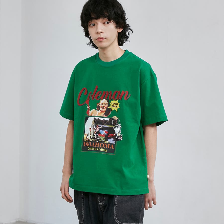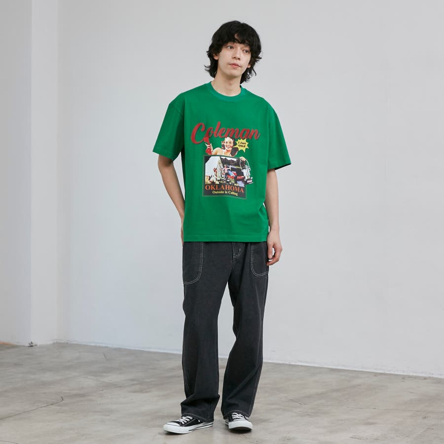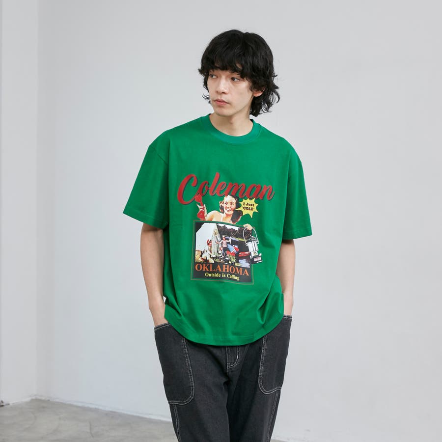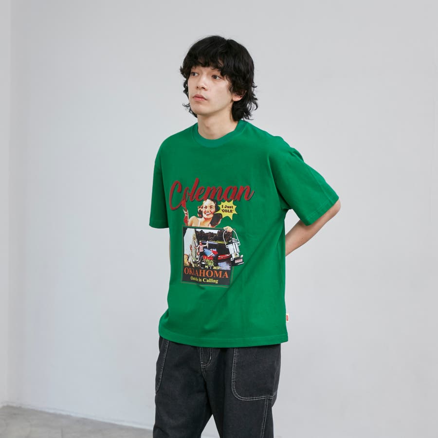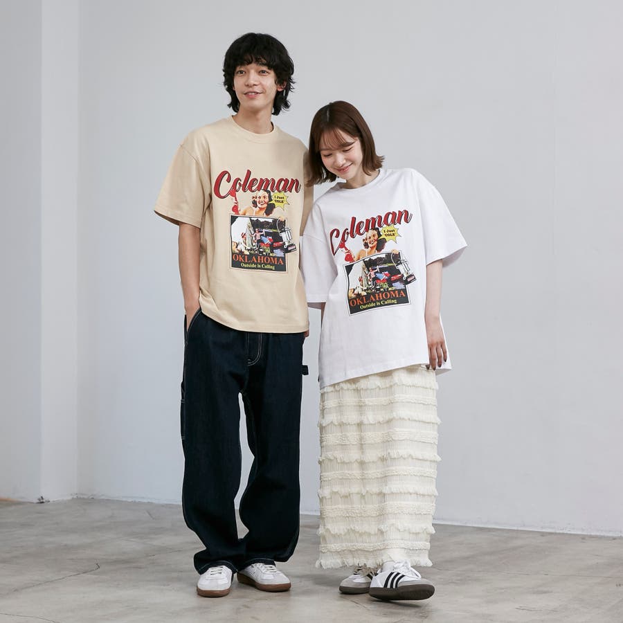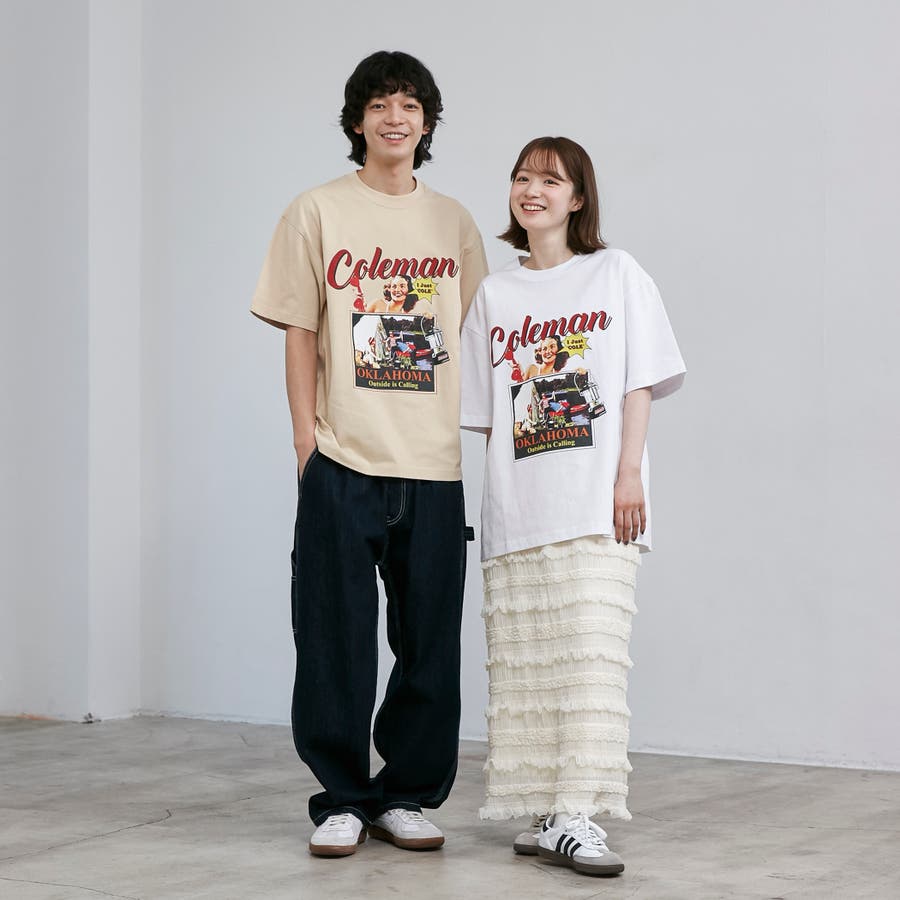 アメリカンカルチャーを感じさせるようなユニークなグラフィックで、カジュアルながらも目を引くコールマン別注Tシャツ。