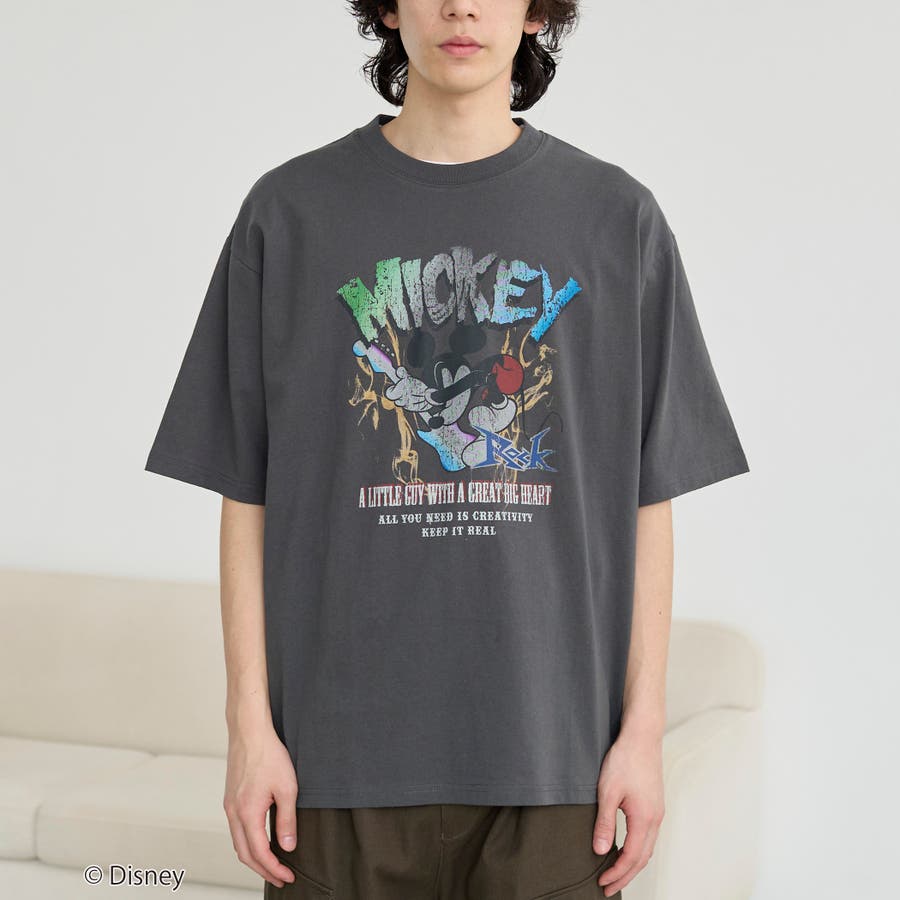 ・ヴィンテージ加工と甘さを抑えたプリントで大人も着やすい「ミッキー」Tシャツ