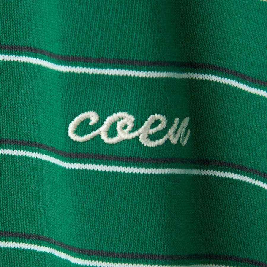 配色にこだわった左胸のcoenロゴ刺繍がシンプルな中にさりげなく個性を加えます。