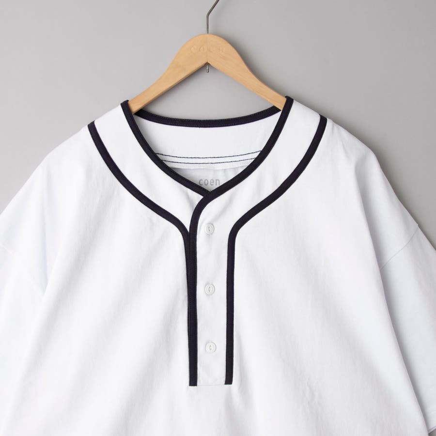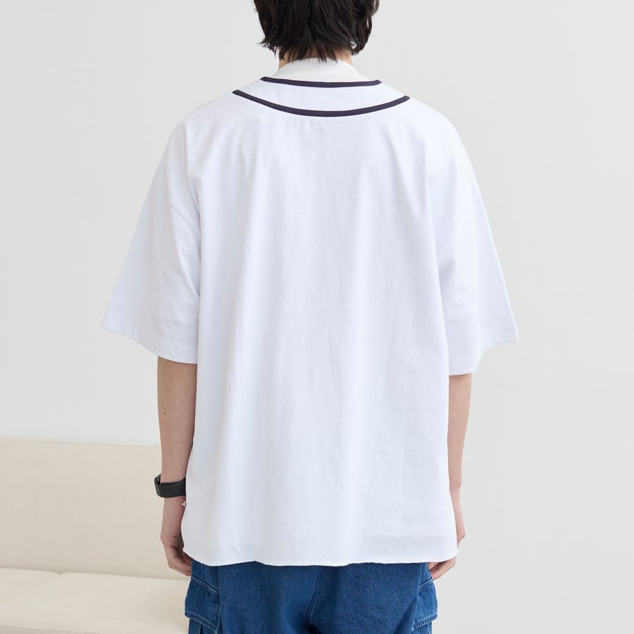 ベースボールシャツをモチーフにしたデザインで、シンプルになりがちな夏のコーデに新しいアクセントを加える一枚。