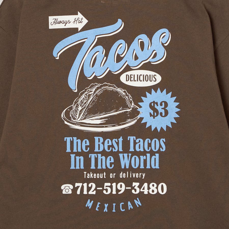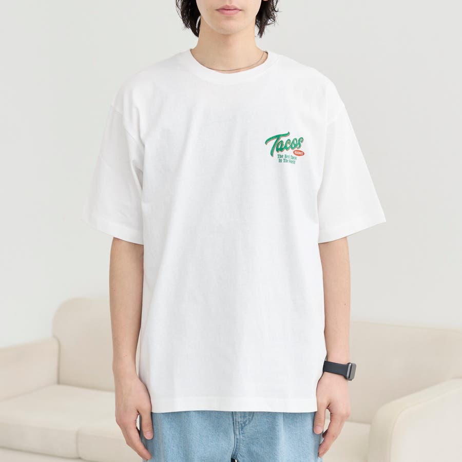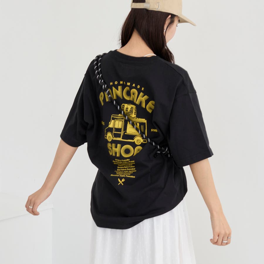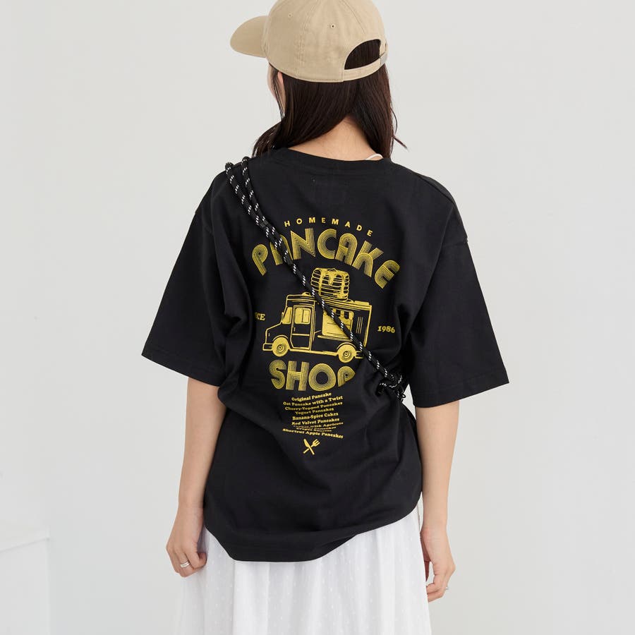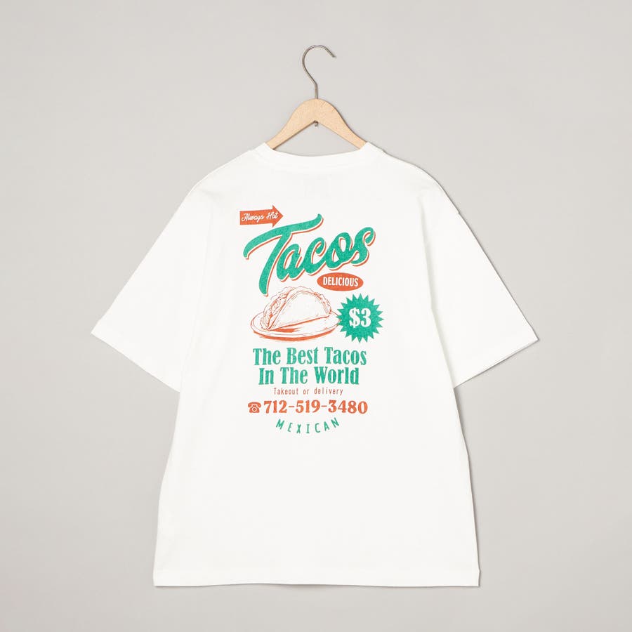 アメリカンなフードショップモチーフを大胆にプリントしたTシャツ。
