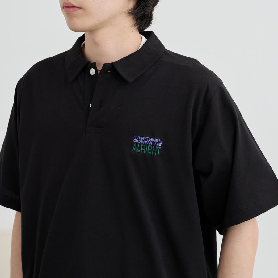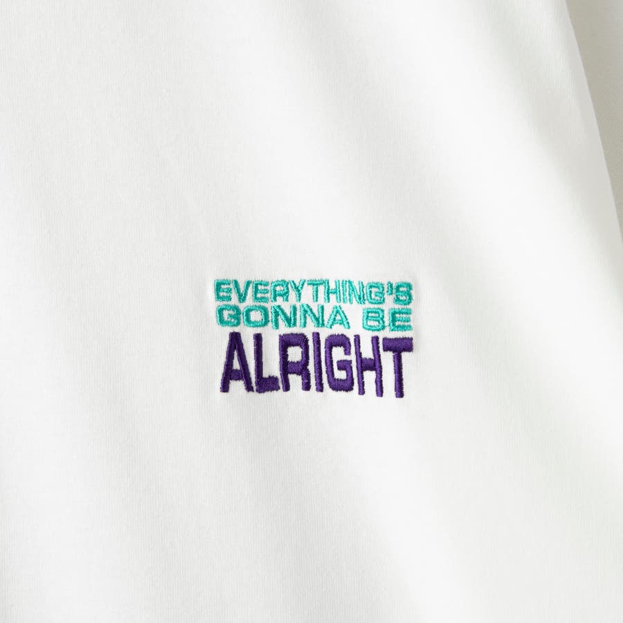 左胸にはカラフルなロゴ刺繍が施されており、シンプルながらも目を引くデザインが特徴です。