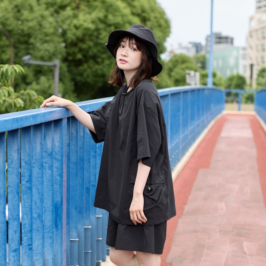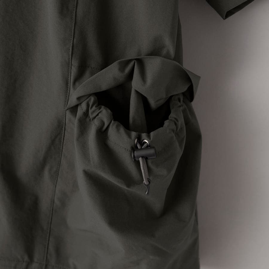 ゆったりとしたシルエットがトレンド感を演出し、左右で異なるデザインのポケットでアウトドア感をプラス。
