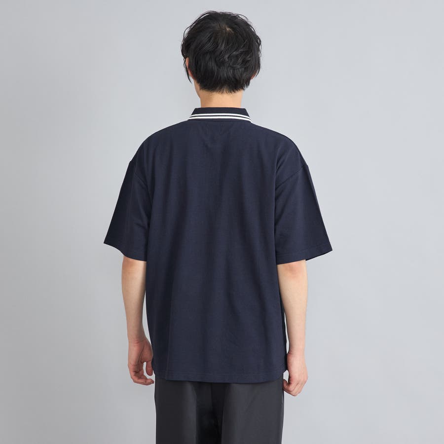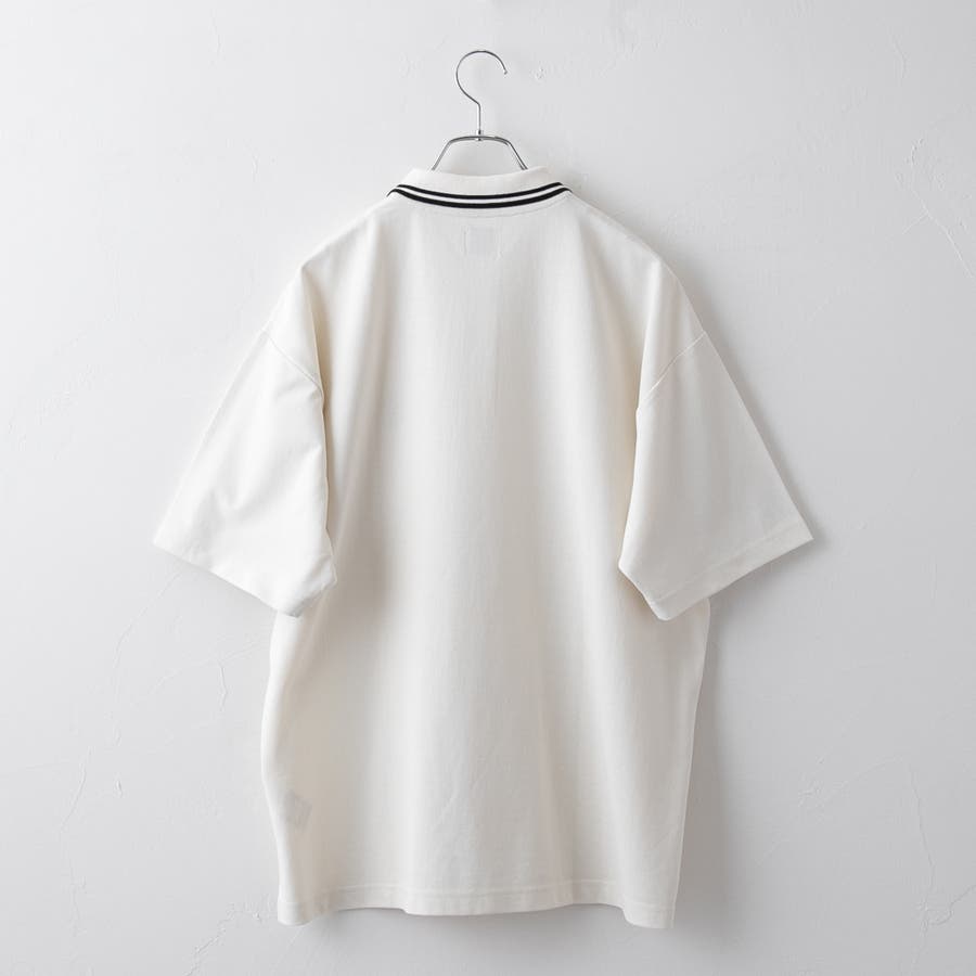 無地でシンプルなデザインながらも、さりげなく襟もとに施されたラインがポイントです。程よくゆとりのあるベーシックなサイズで抜け感のあるスタイリングに◎