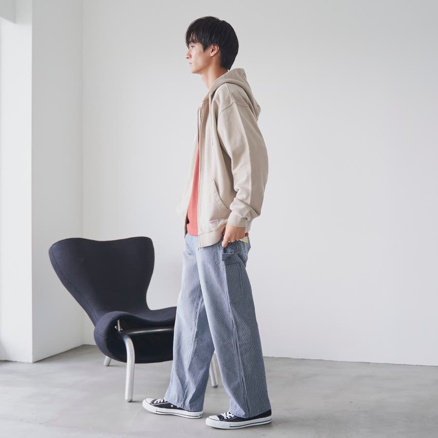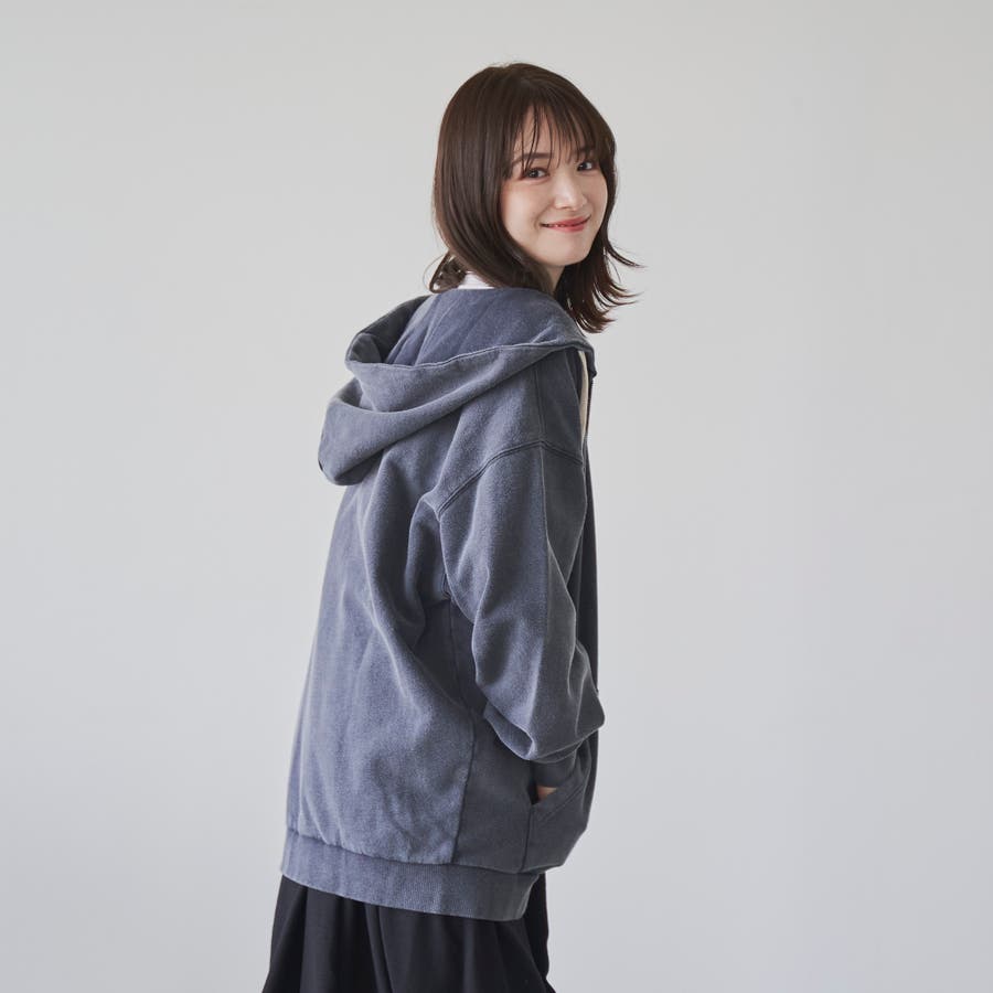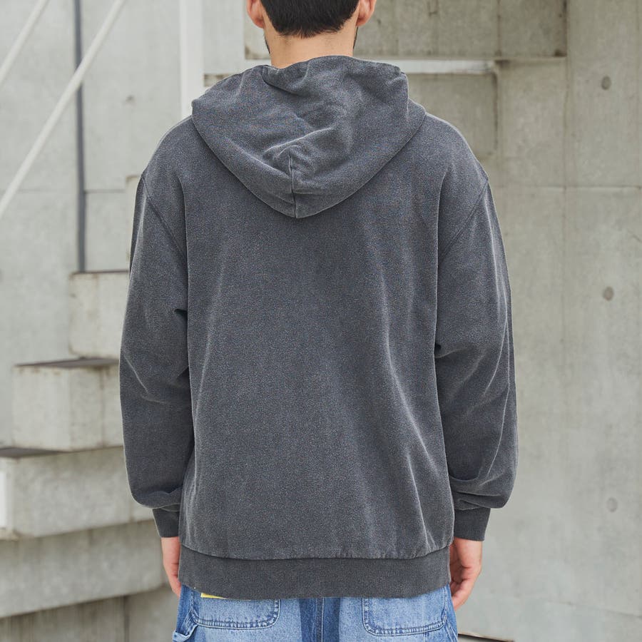 程よく色落ちした風合いがこなれた印象を与え、カジュアルになりすぎず、大人のスタイルにも自然に馴染む一着。季節の変わり目に活躍する軽めの羽織りとしても重宝し、ベースカラーと同色で施されたロゴ刺繍がさりげないアクセントに。