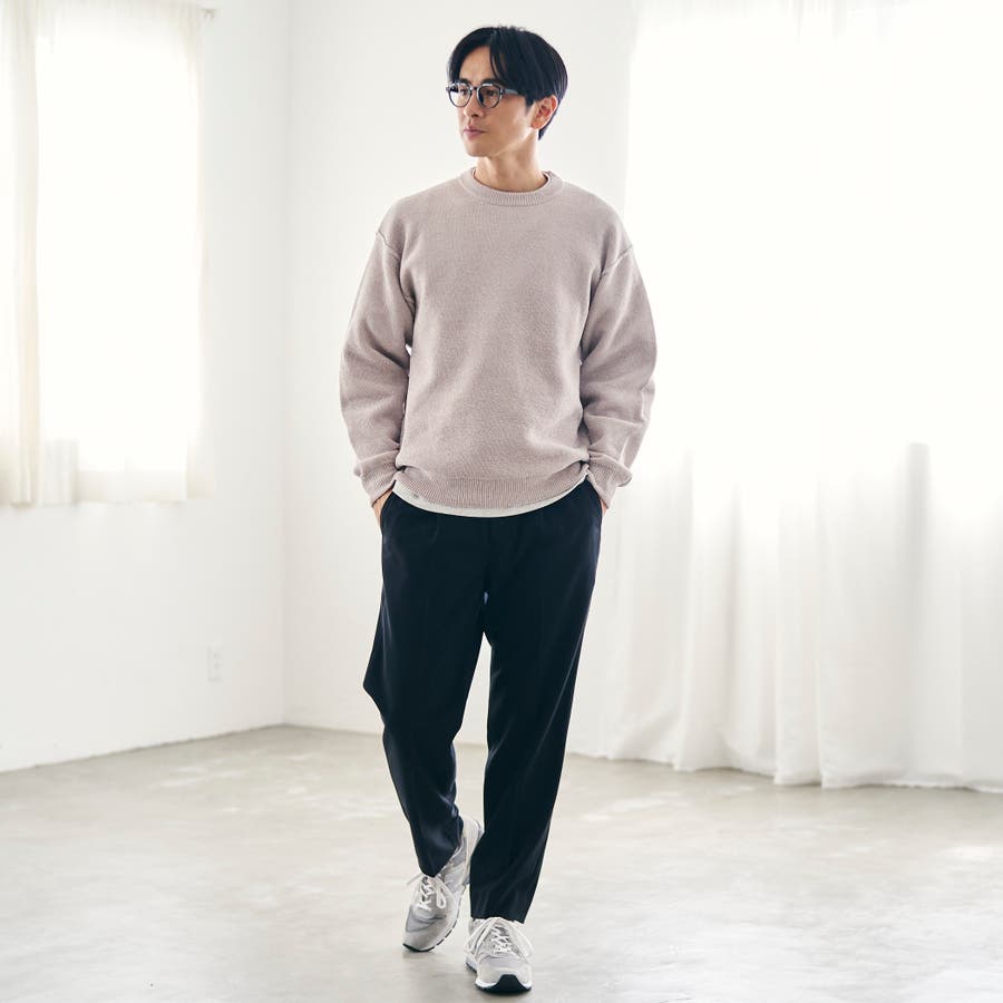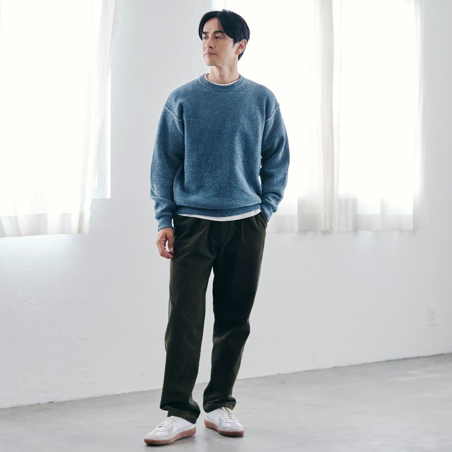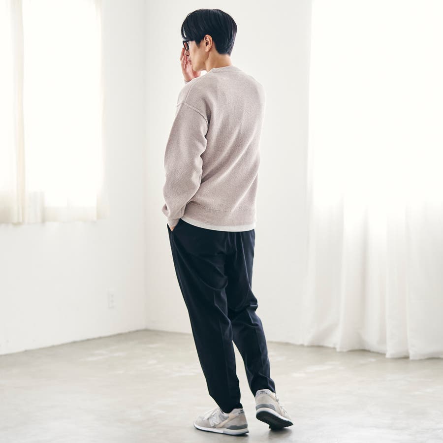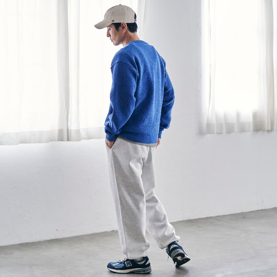 スウェット感覚で着られる気軽さが魅力で、デニムやチノパンと合わせたラフなスタイルはもちろん、スラックスと合わせて抜け感のあるきれいめカジュアルにも対応。