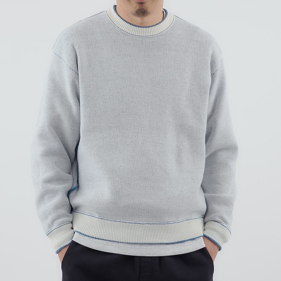 アウトリンキング(縫い代見え)を活かした裏面は、気分を変えたい日にぴったり。ダブルフェイスの編み地で生地に安定感を持たせ、着心地も快適です。
