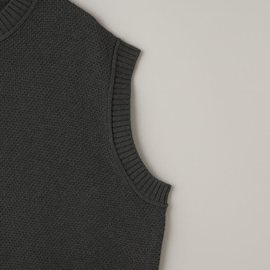 シンプルで着回しやすく、重ねるだけで季節感のあるスタイルが完成するニットベスト。