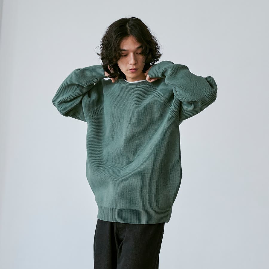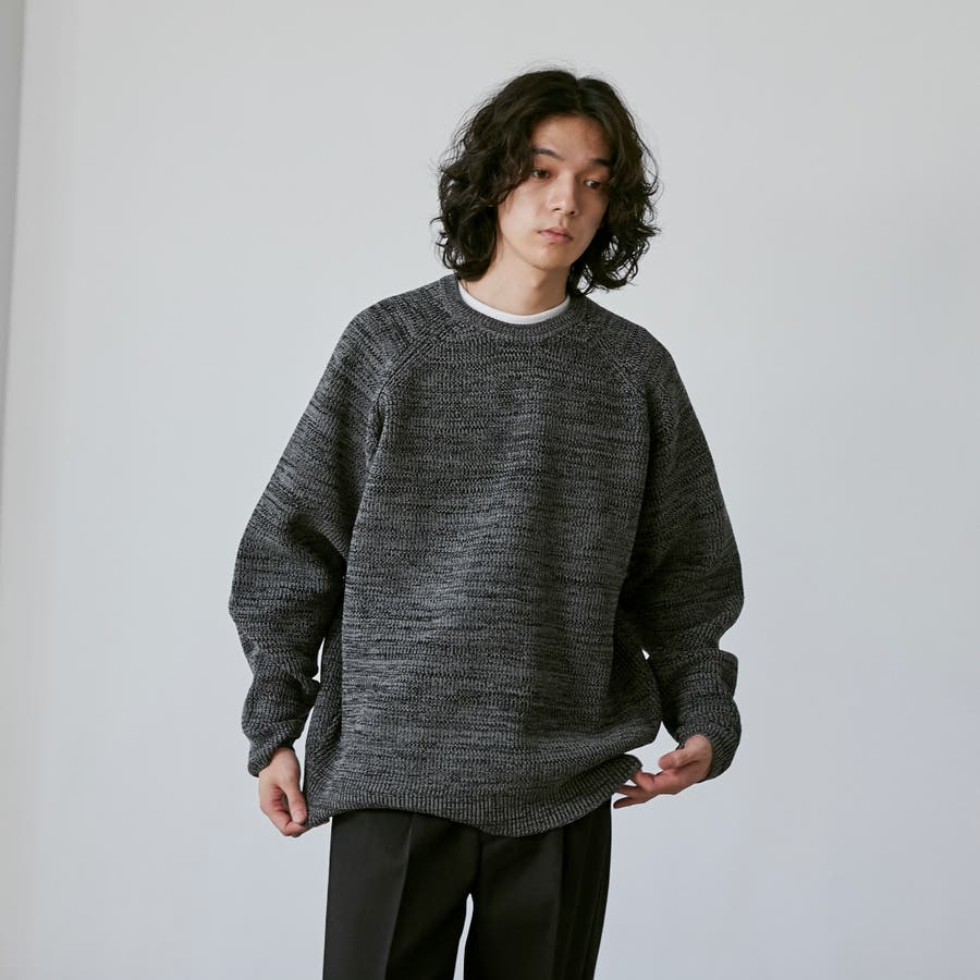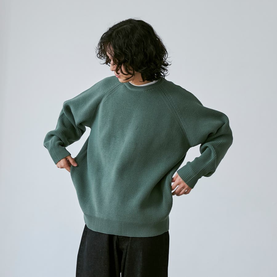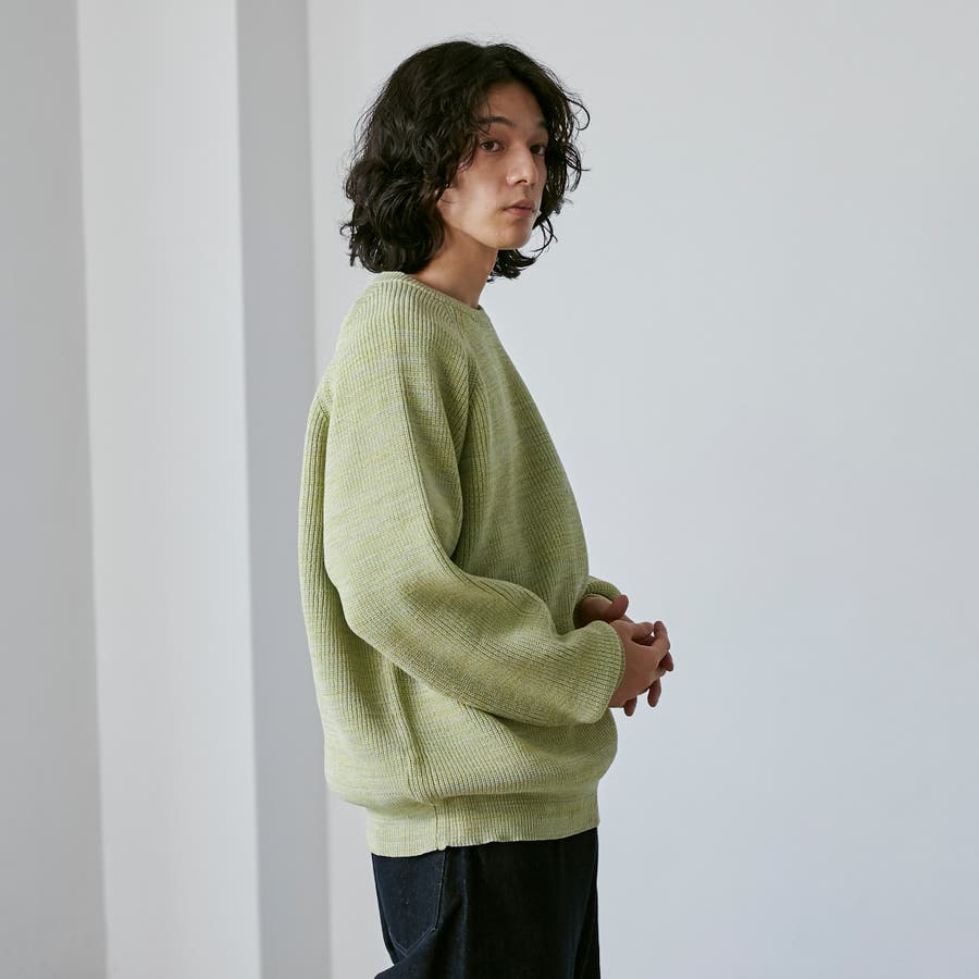 ニット素材特有の生地の伸びを感じられるので、動きやすく着心地のいい素材になります。