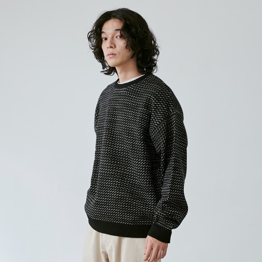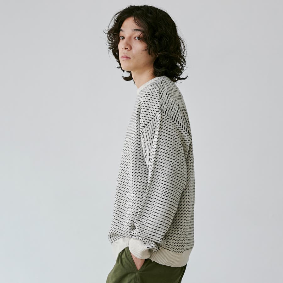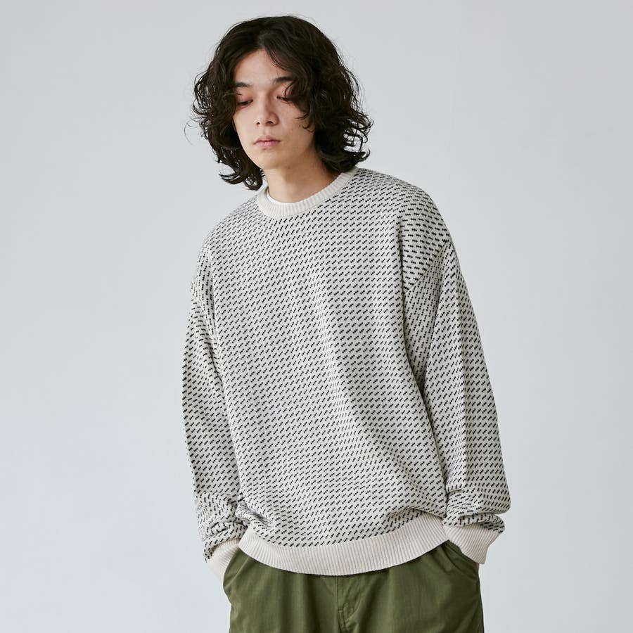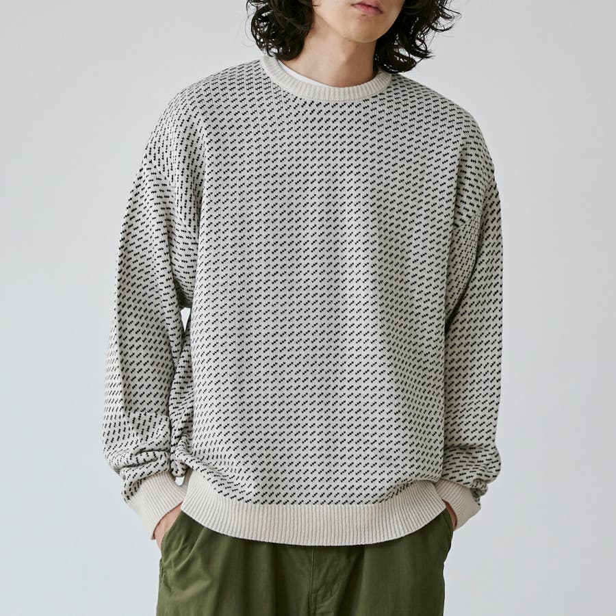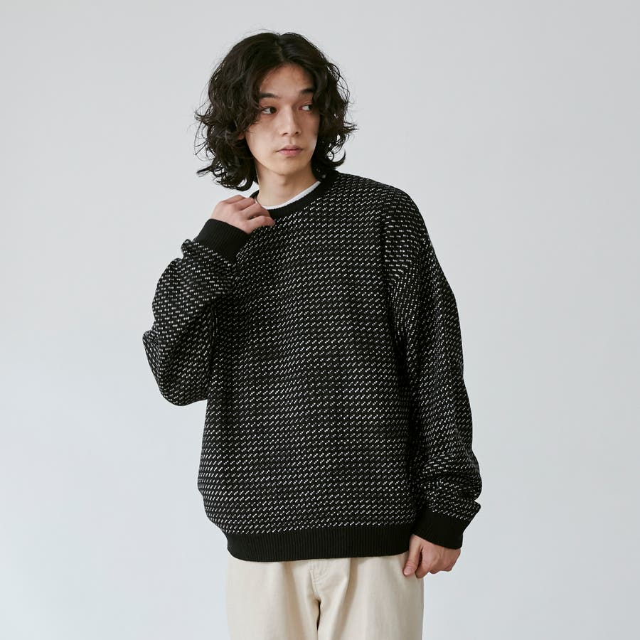 1枚でコーデの主役になるバーズアイ柄ニット。