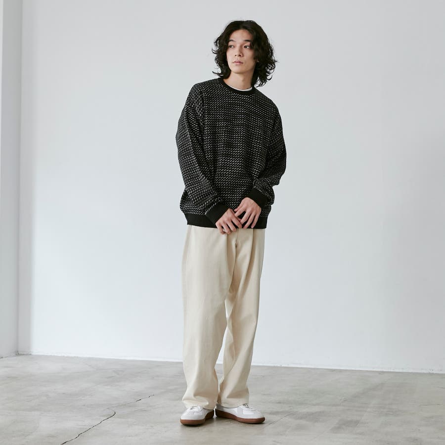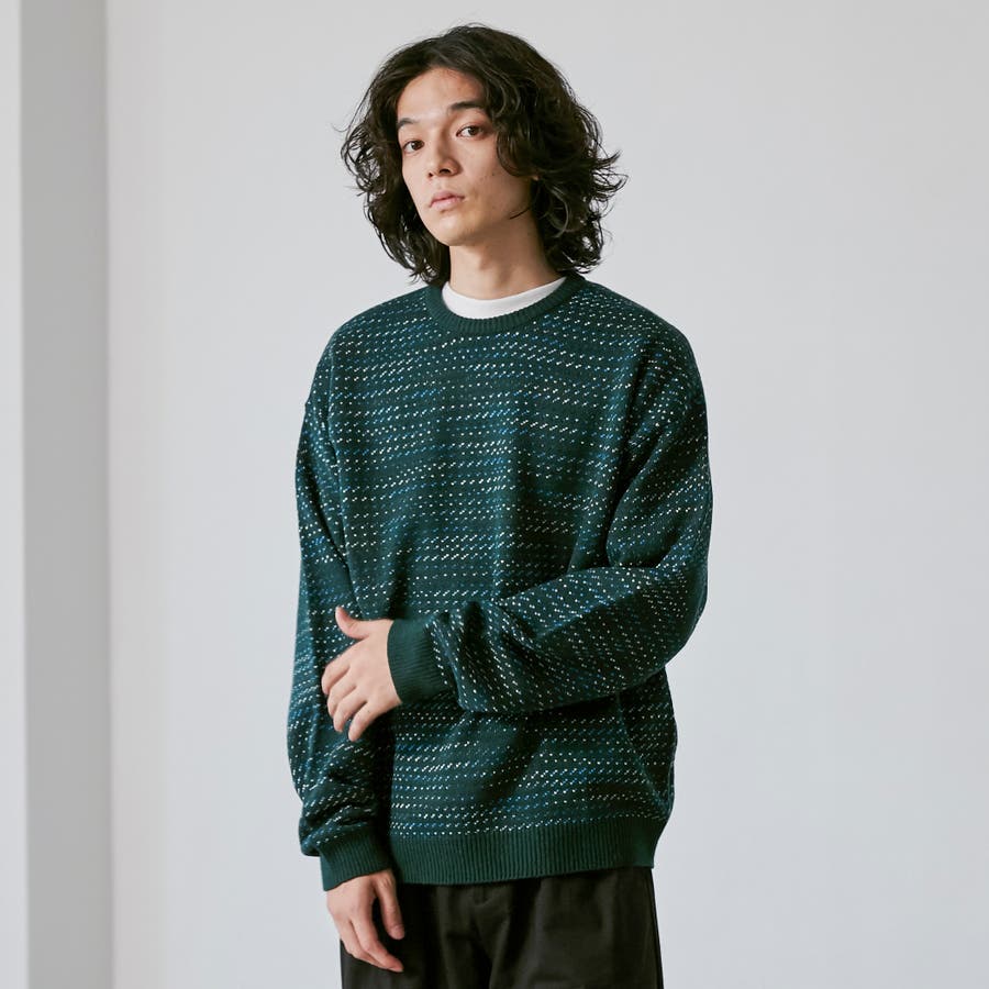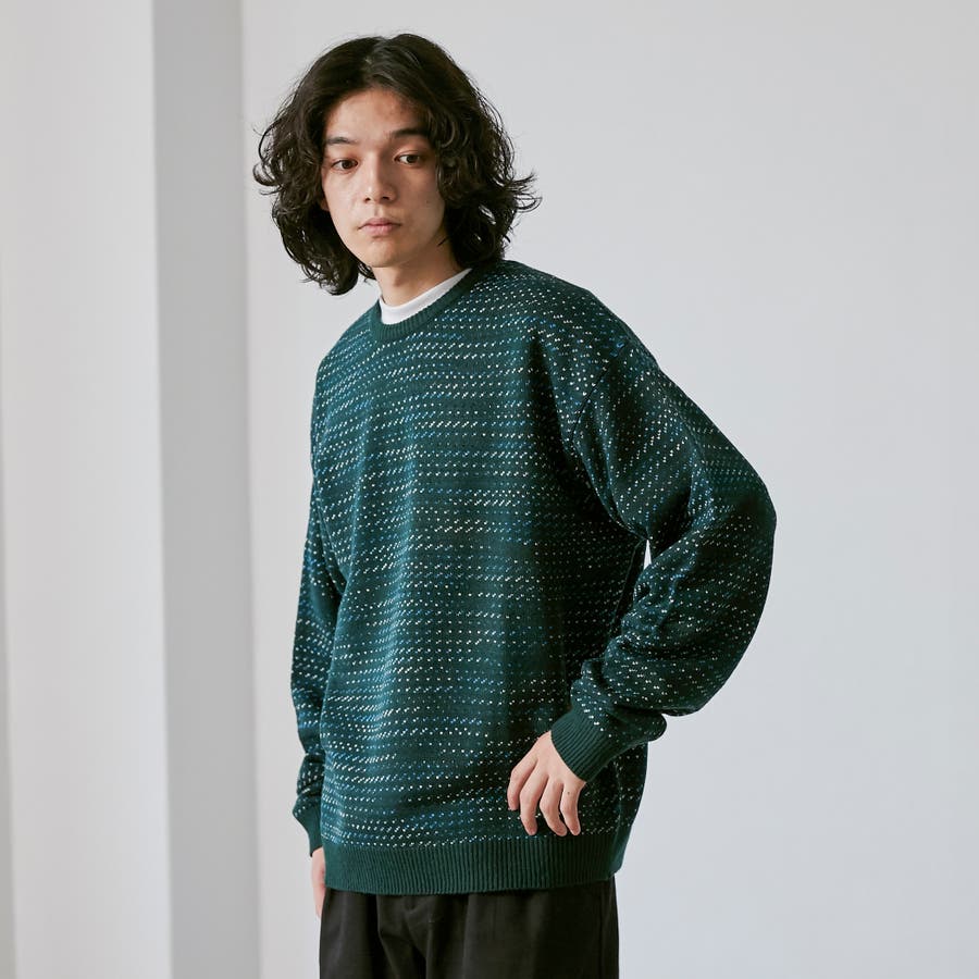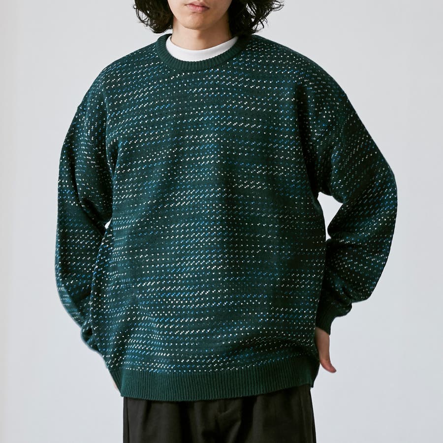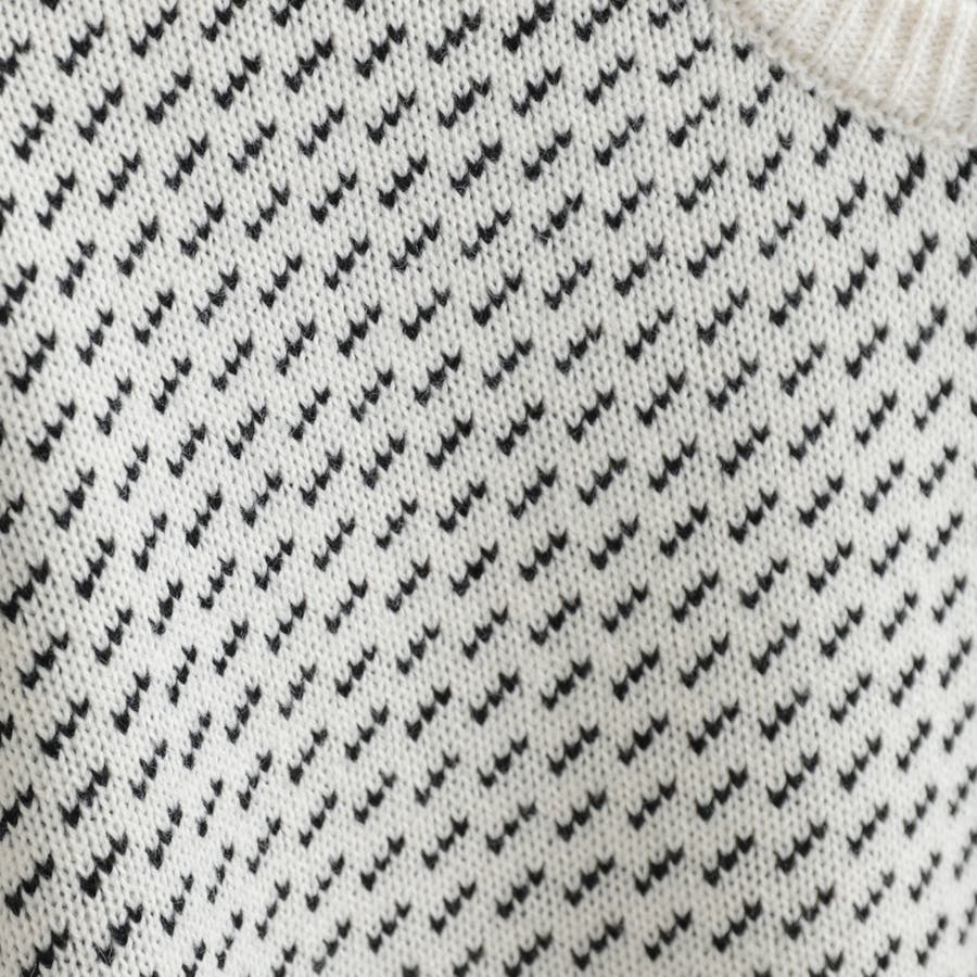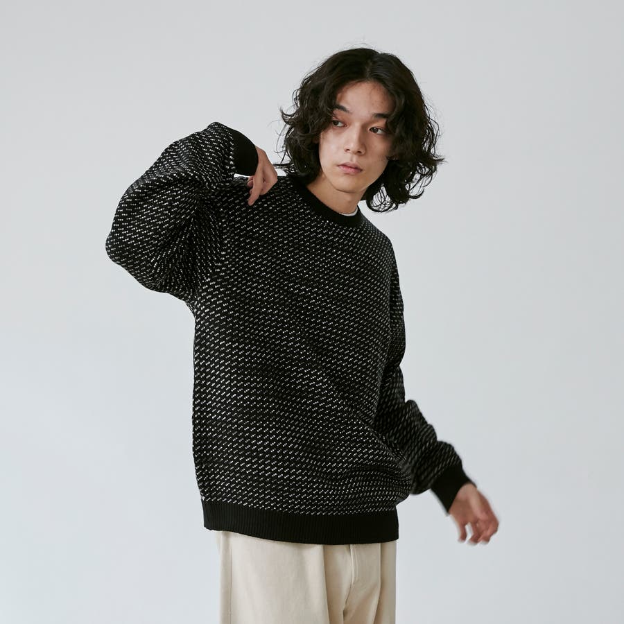 1枚でコーデの主役になるバーズアイ柄ニット。
