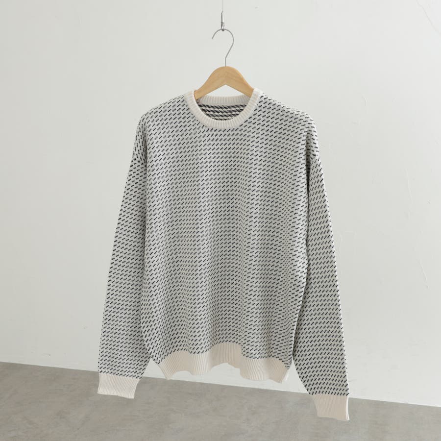 オーセンティックな柄模様ながら、主張感を抑えたバーズアイ柄でデザインしたニット。