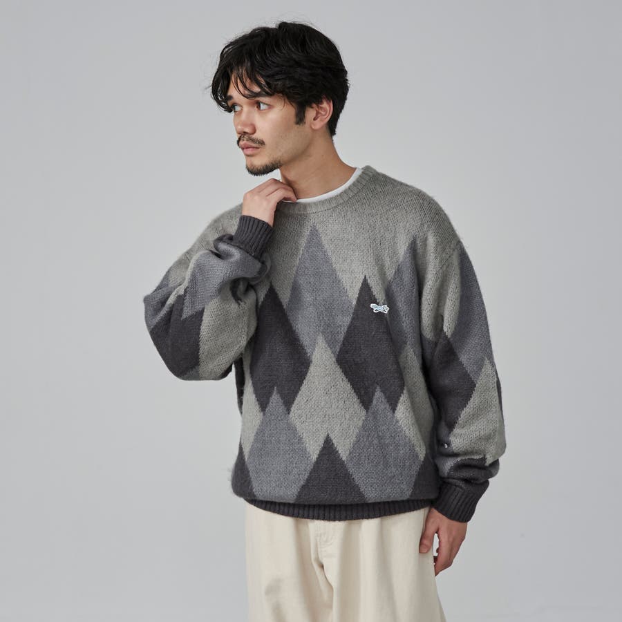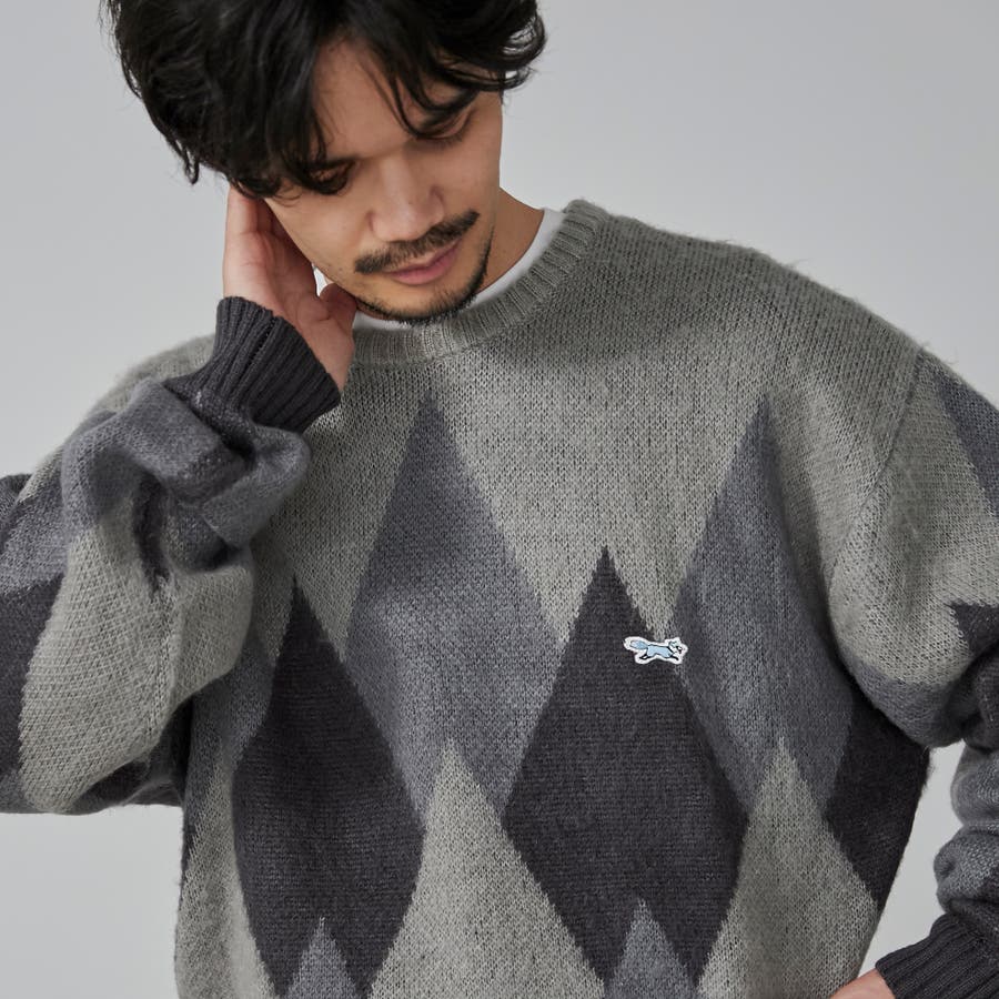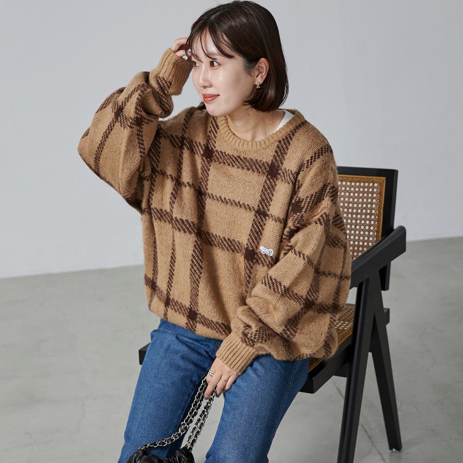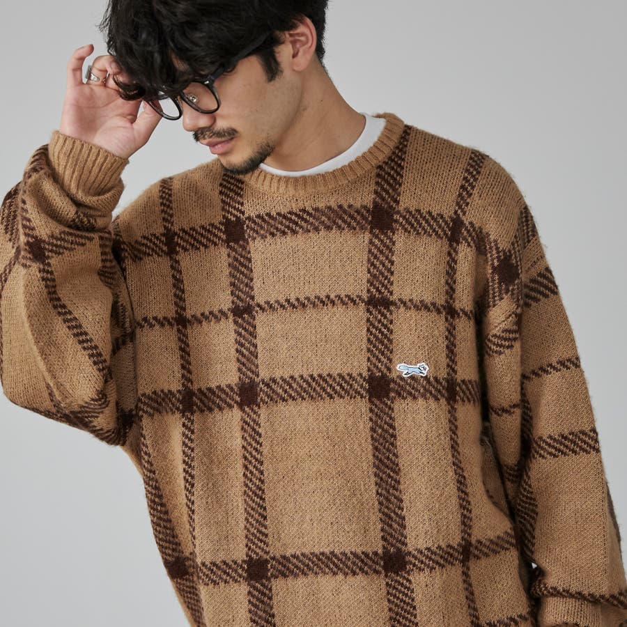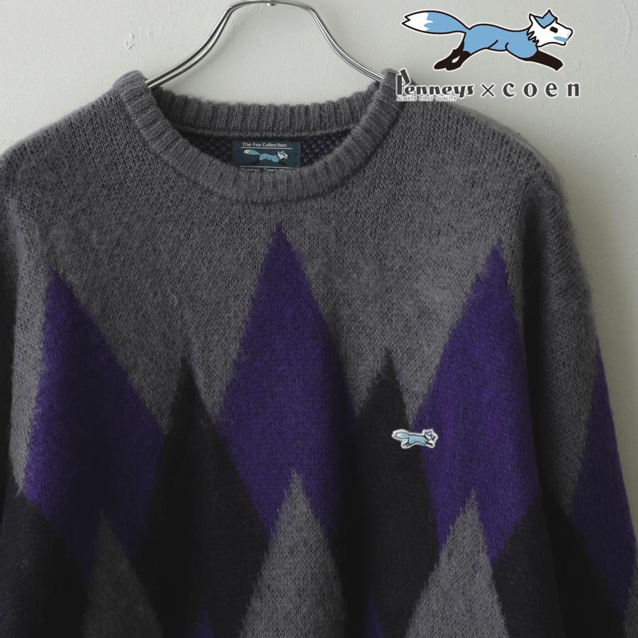 PENNEYS(ぺニーズ)別注ビッグシルエットジャガード柄シャギーニット チェッ…