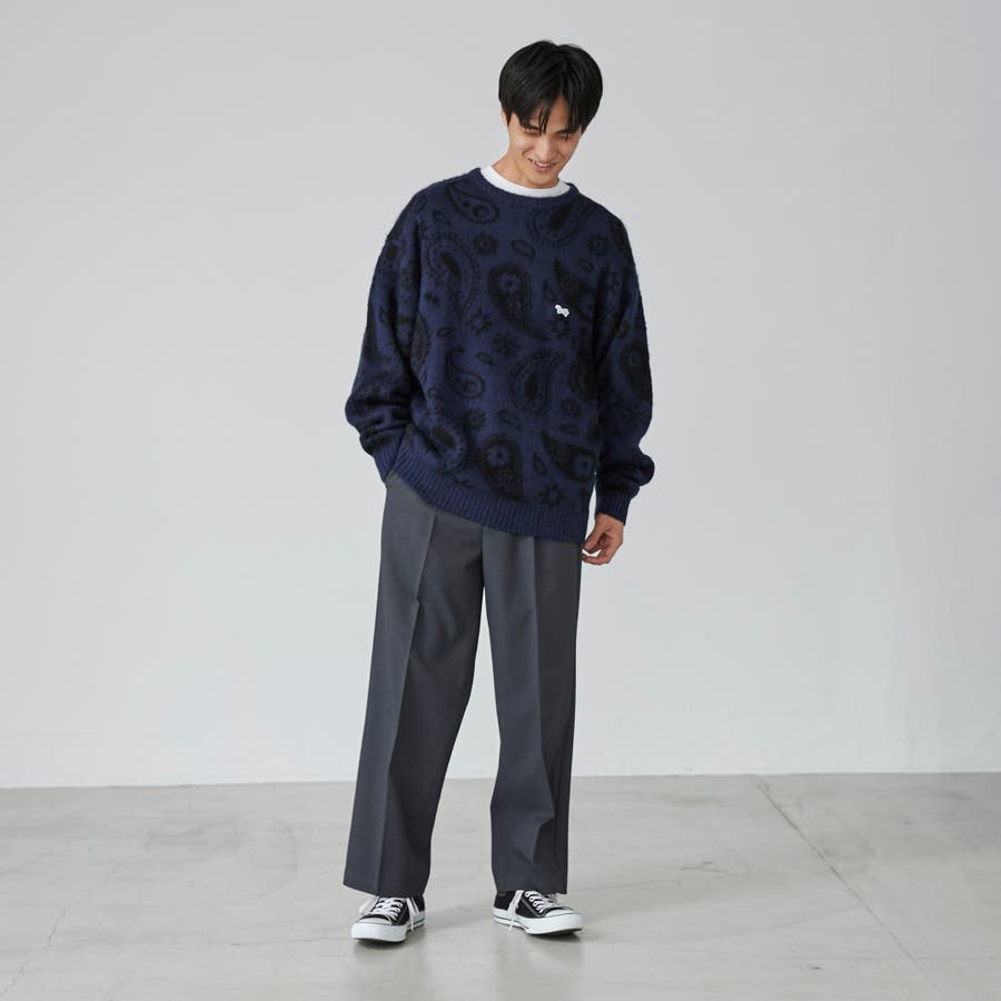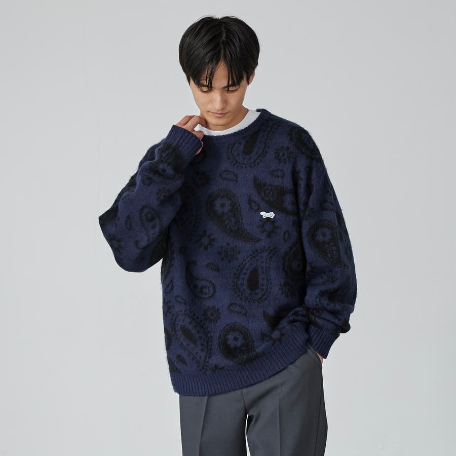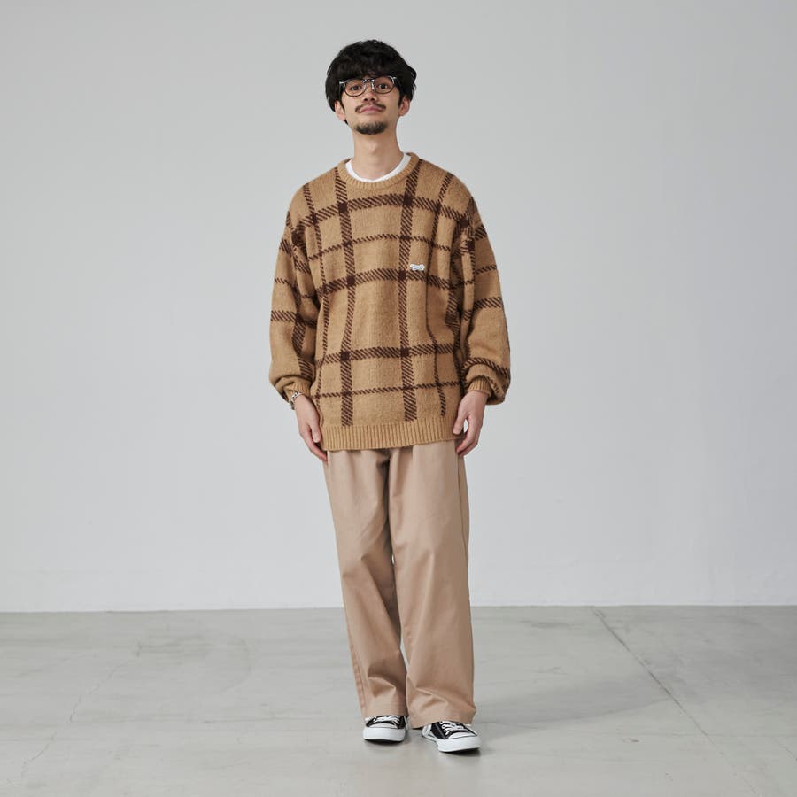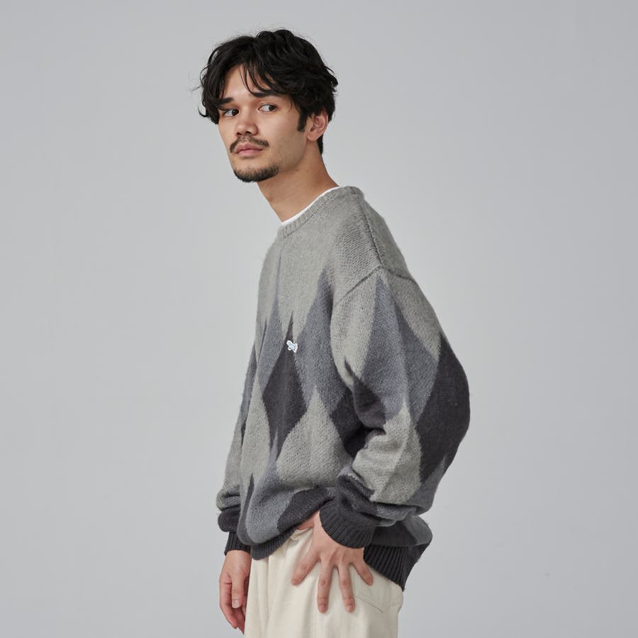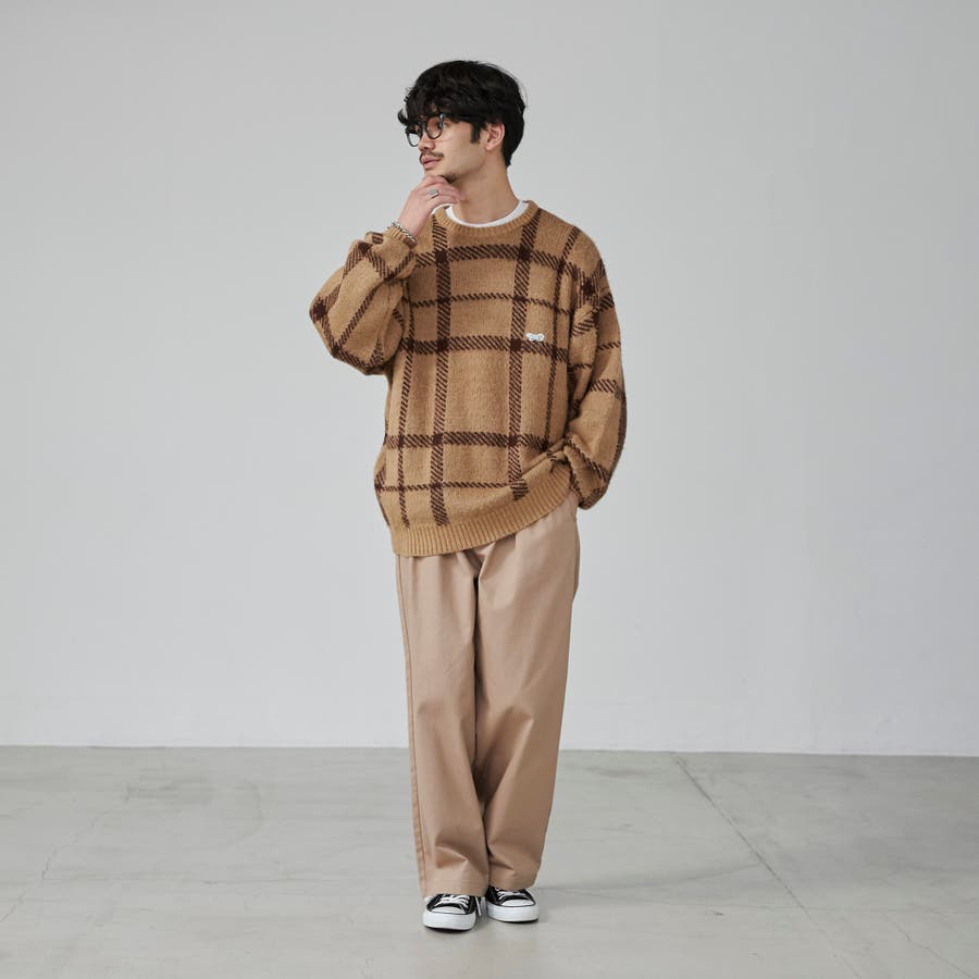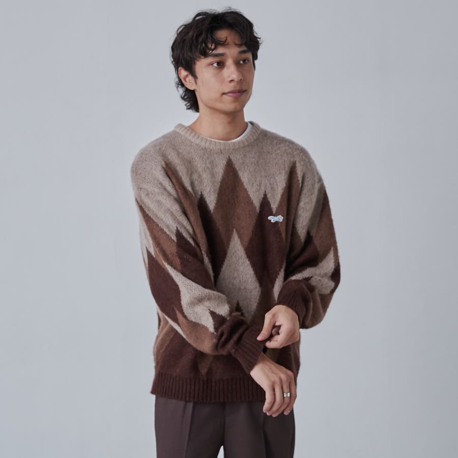 PENNEYS(ぺニーズ)別注ビッグシルエットジャガード柄シャギーニット チェッ…
