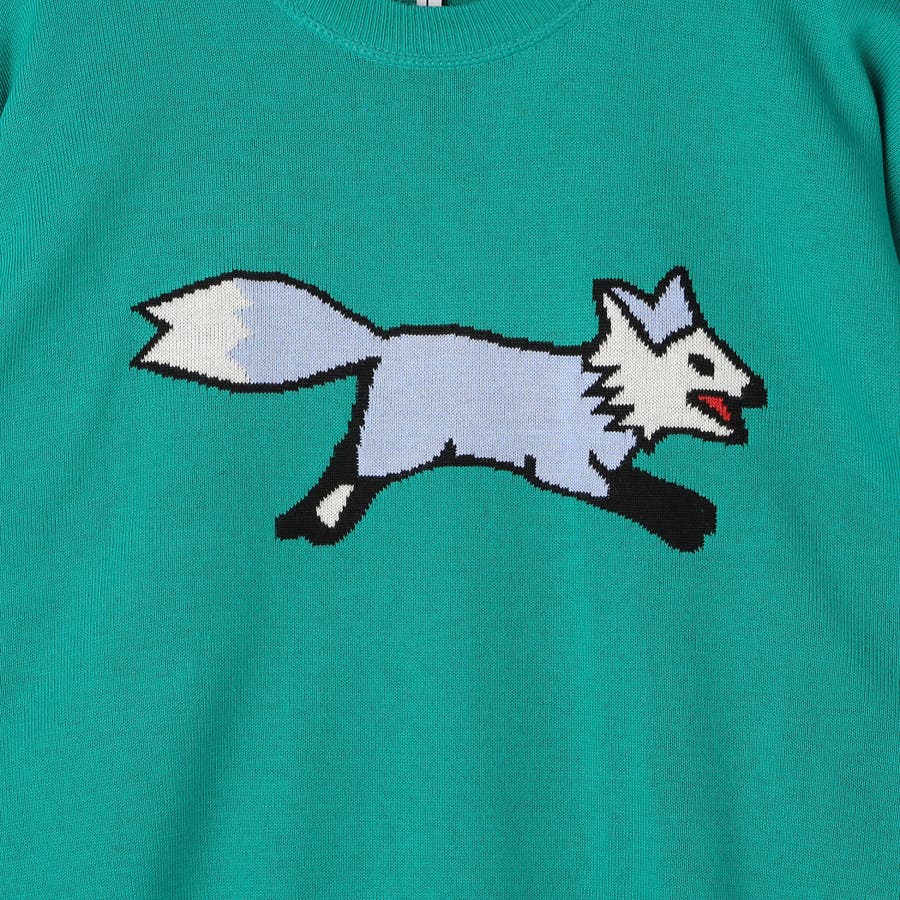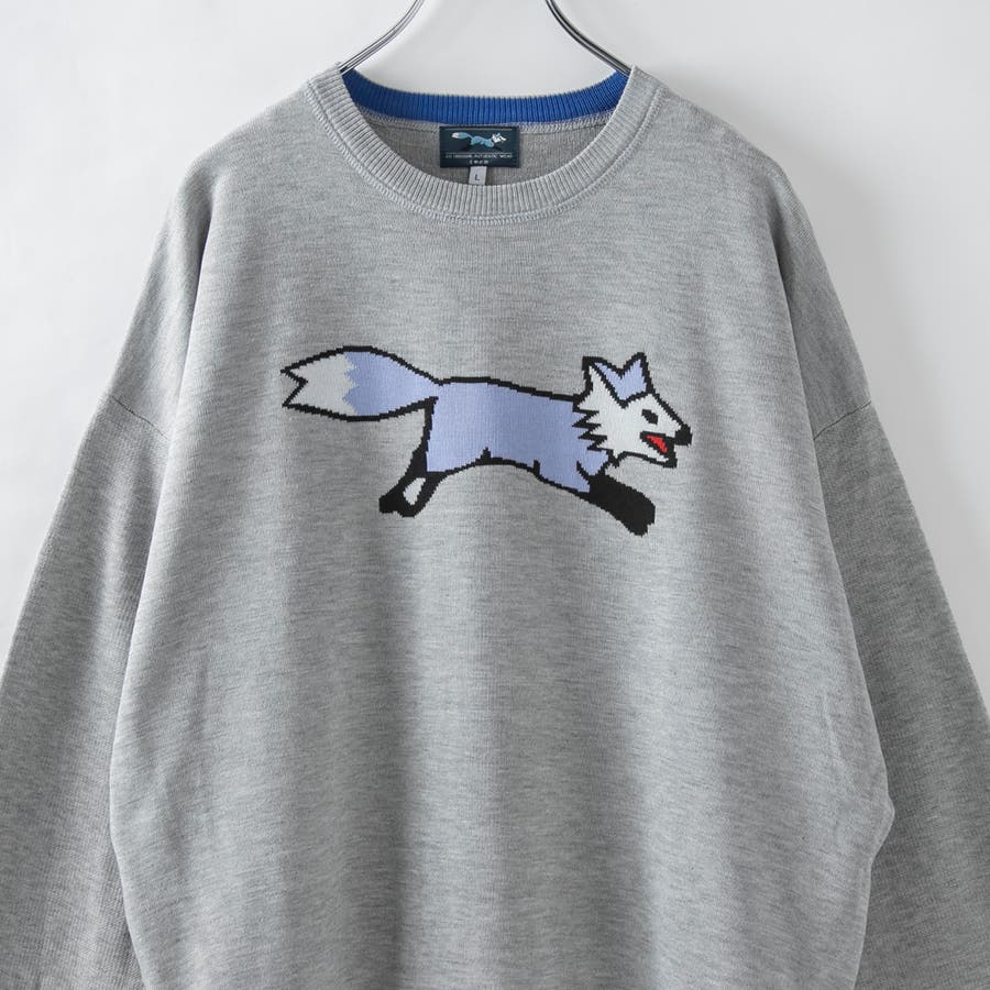 シンプルな無地ボディにライトブルーのFOXが印象的で1枚でコーデが完成します。