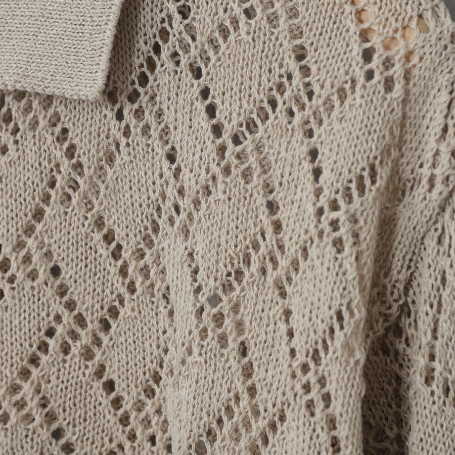 アーガイル柄のようなダイヤ模様の編地で仕上げたニットカーディガン。