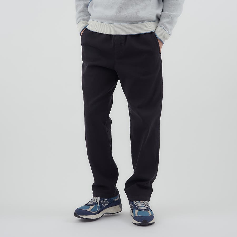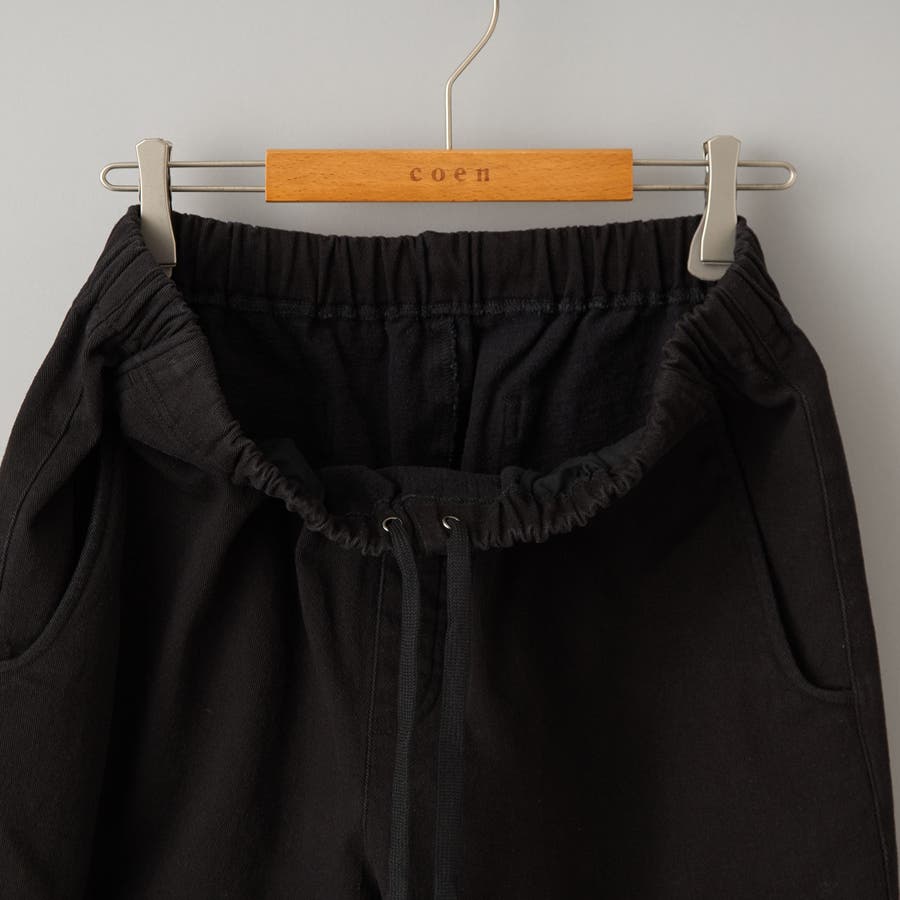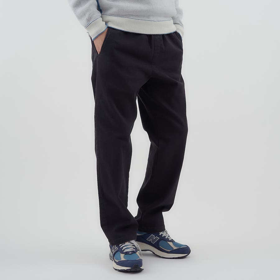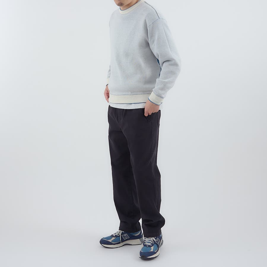 ストレッチ性を備えており、腰回りはゆったりとしたテーパードシルエットで、動きやすさとすっきりとした見た目を両立。