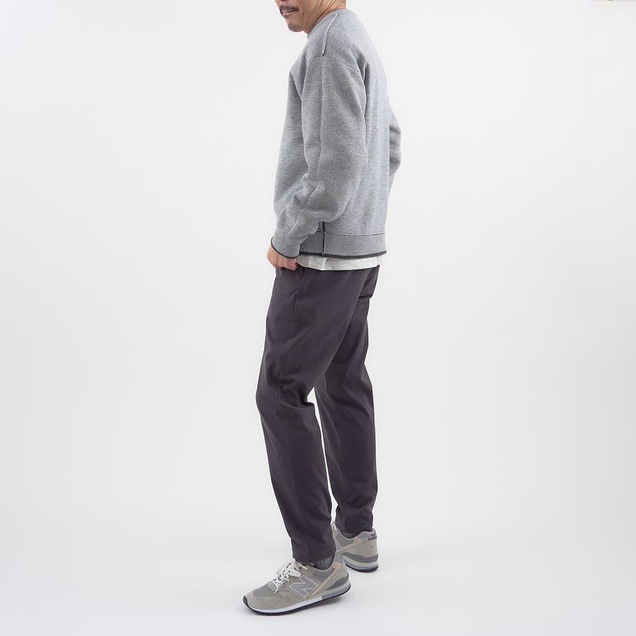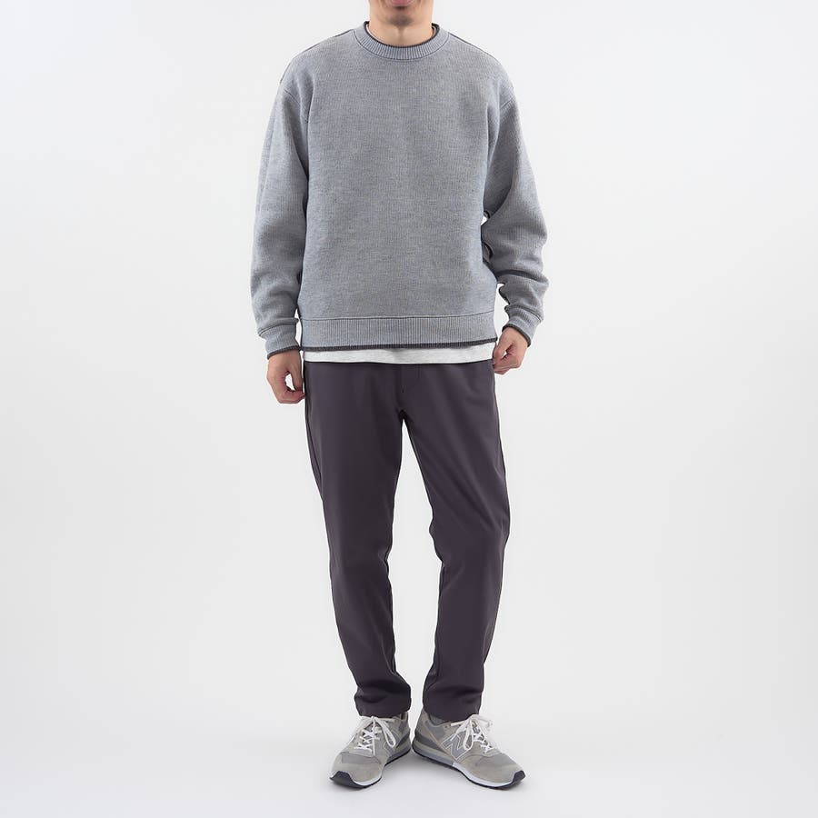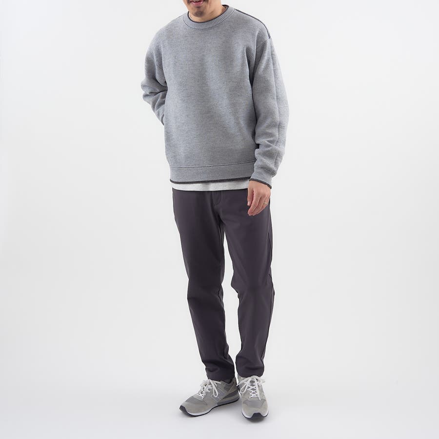 すっきりとしたスリムシルエットで、きれいめなアウターとも好相性。