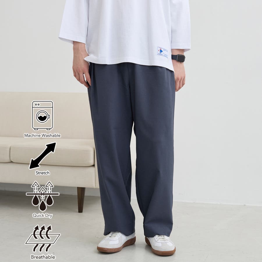 【爽多(R)】ワイドイージーパンツ ーストレッチ、吸水速乾、通気性、洗濯機洗い可…