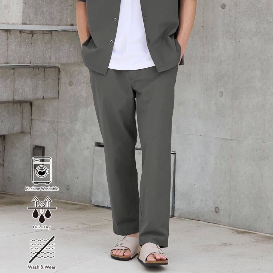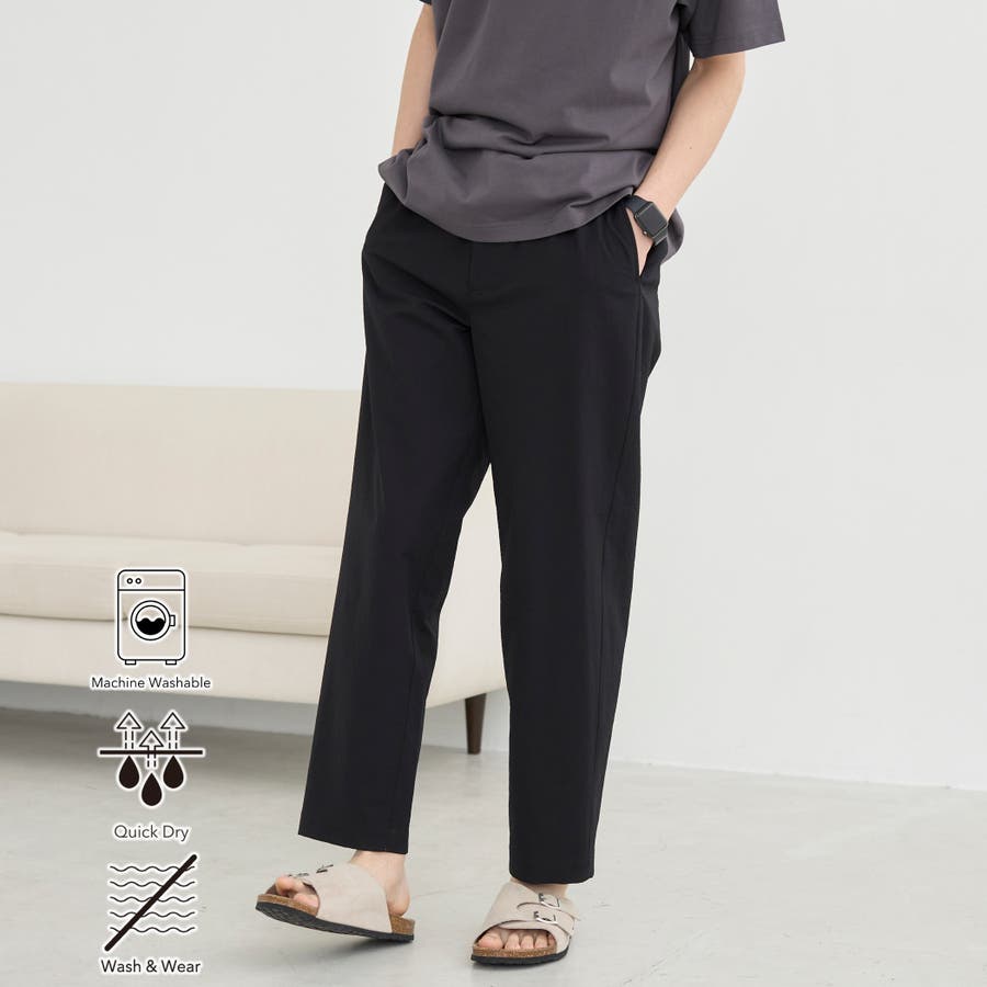 吸水速乾機能と肌離れの良さを兼ね備えており、暑い日や雨の日でも快適に着用できるポリエステル100%のパンツです。