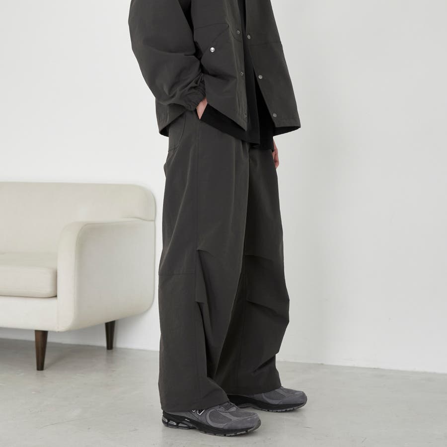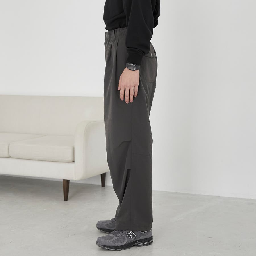 AIRCO素材を使用し、シャカシャカとした素材に多機能性を搭載したトレンド感のあるワイドパンツです。