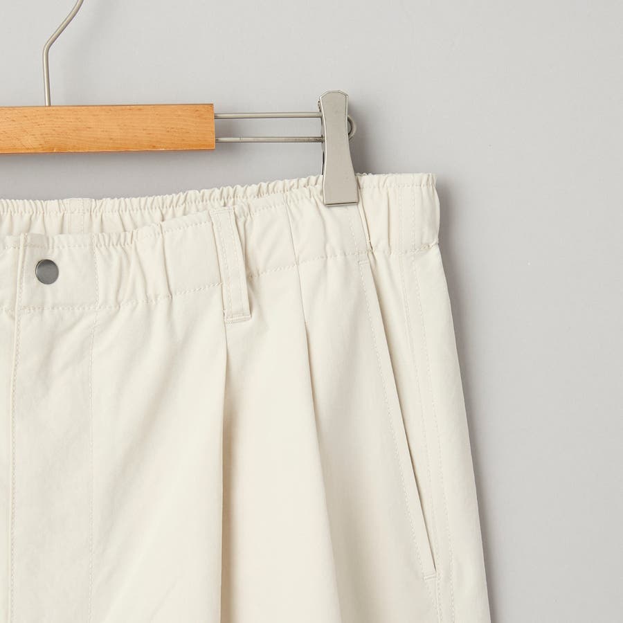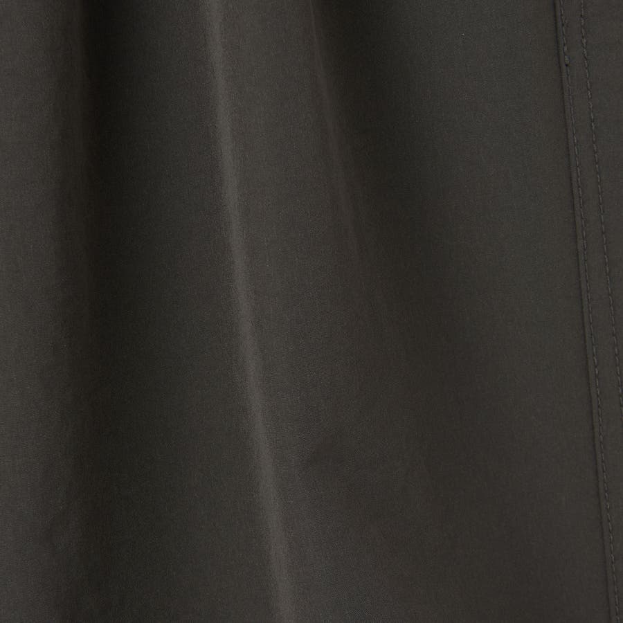 ウエストスピンドル仕様、裾にもドローコードを備え、絞りによる太さ調節や裾を引きずらないアレンジを楽しめるのも魅力。