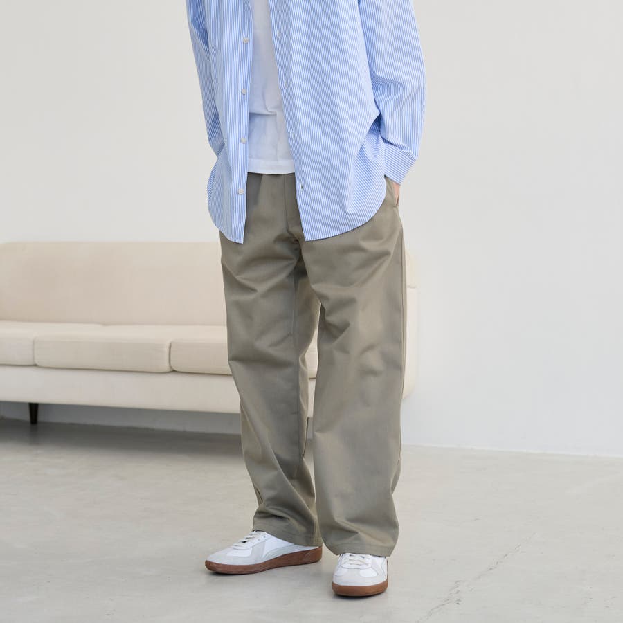 ツイル素材を使用し、丈夫でありながらも柔らかな履き心地のイージーワイドパンツ。