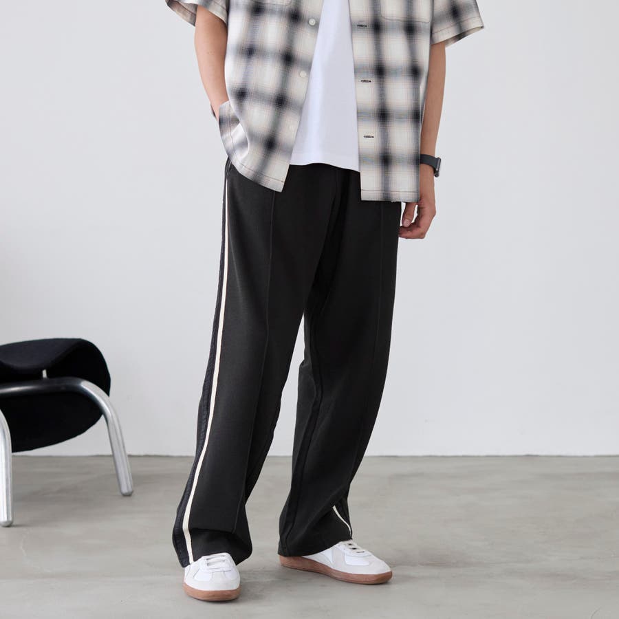 サイドに入ったラインとセンターシームが、カジュアルな中にもシャープな印象をプラス。