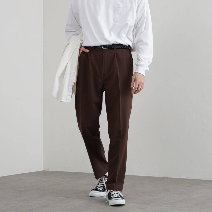 スリムテーパードタックパンツ