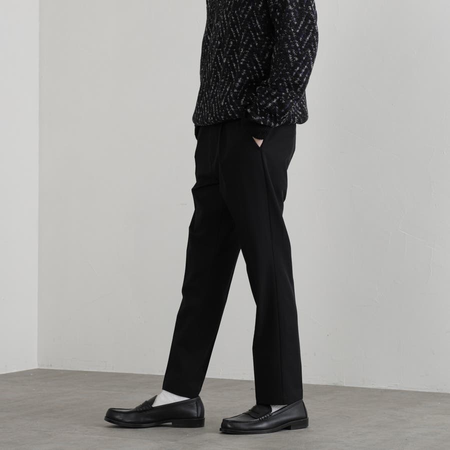 脚のシルエットを隠しつつ、綺麗なフットラインで穿けるオンオフ兼用スラックス。