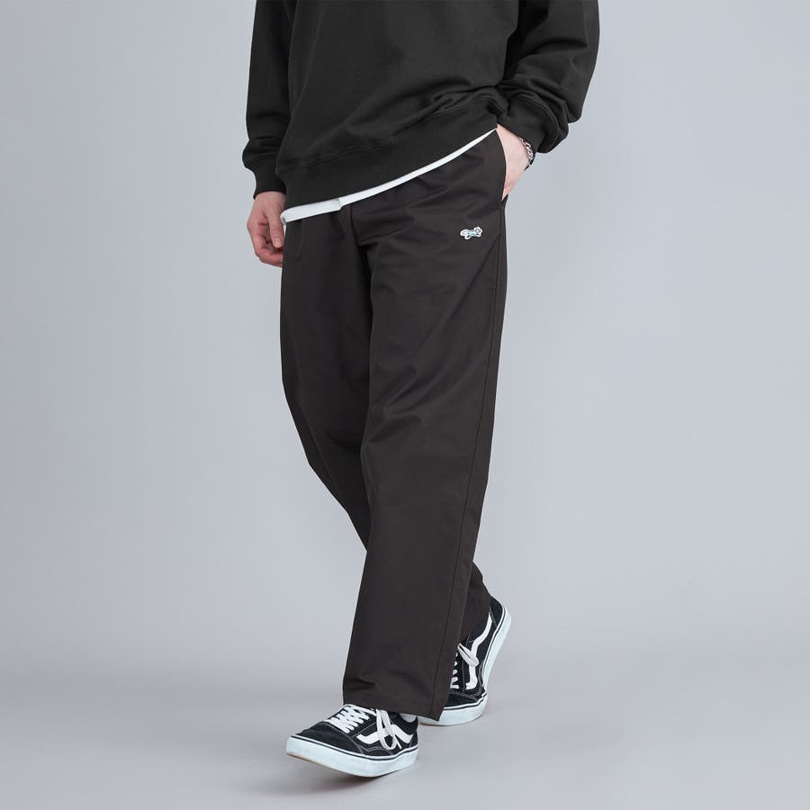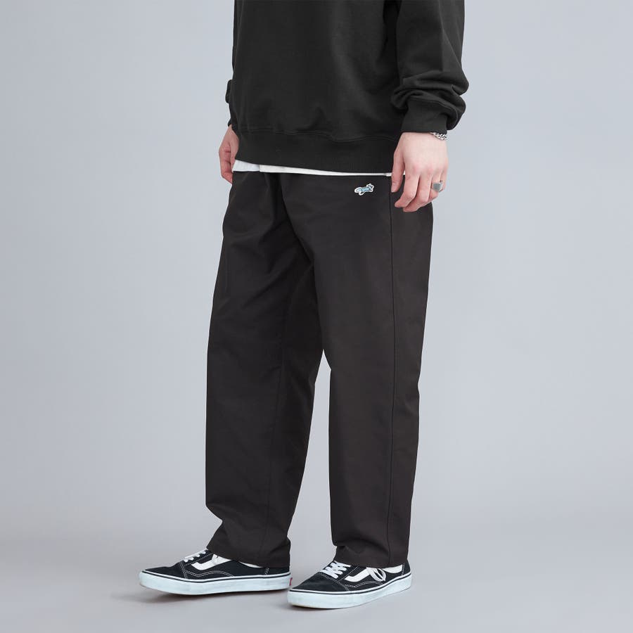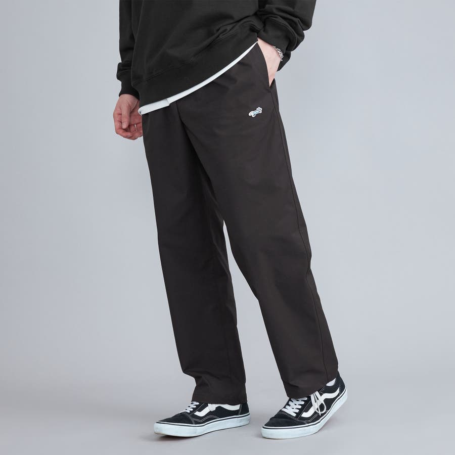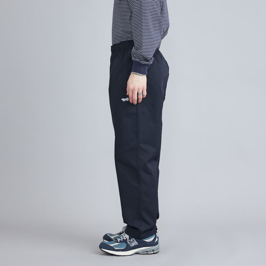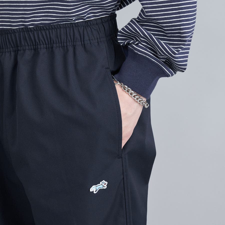 アイコニックなワッペン刺繍を施したツイル地のイージーパンツ。