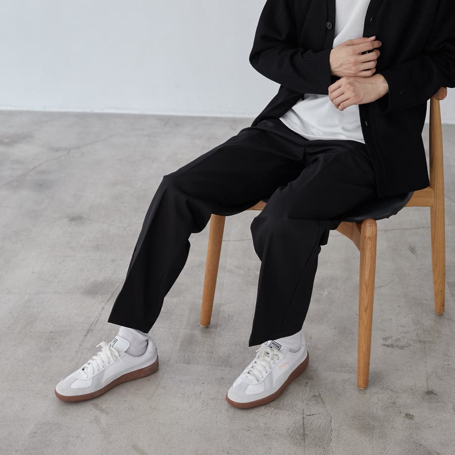 程良くゆとりがありつつ裾にかけてテーパードするきれいなシルエットで、トレンドや年代問わず着用いただけます。