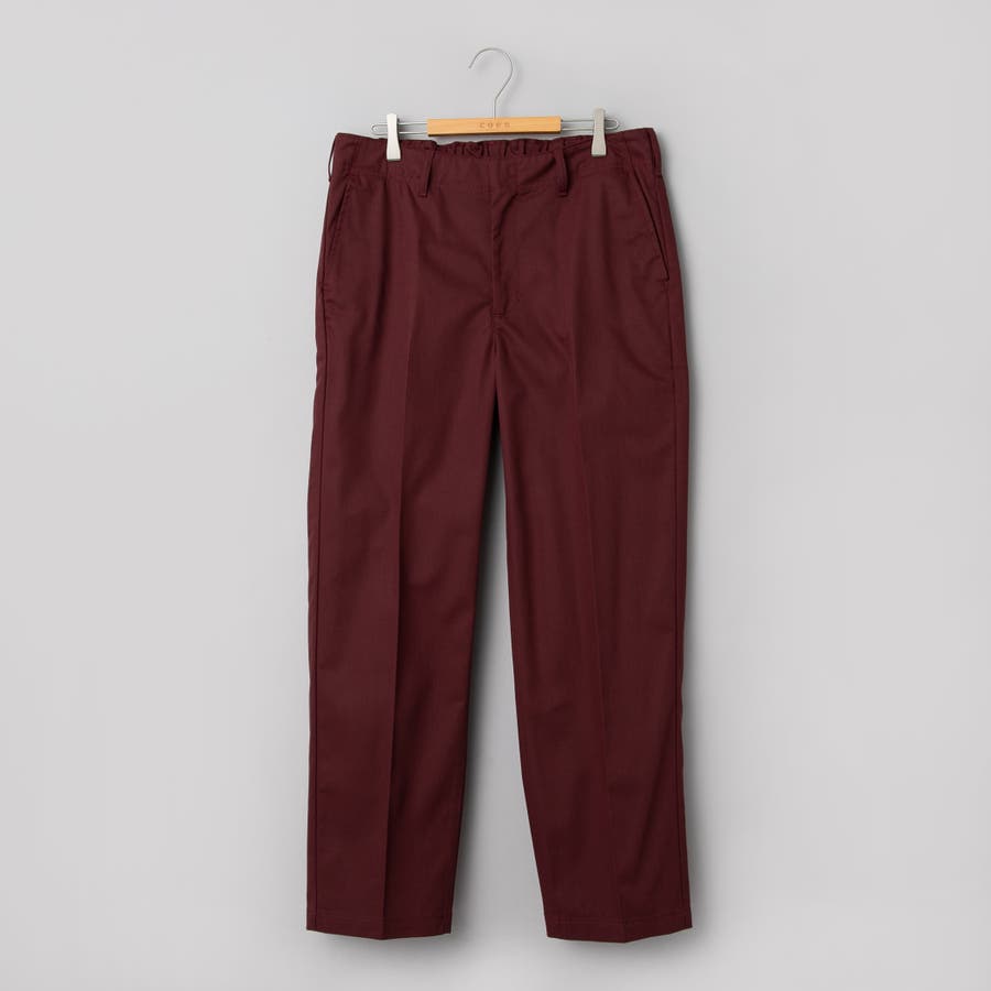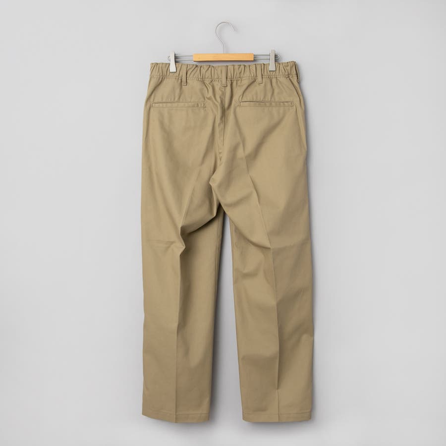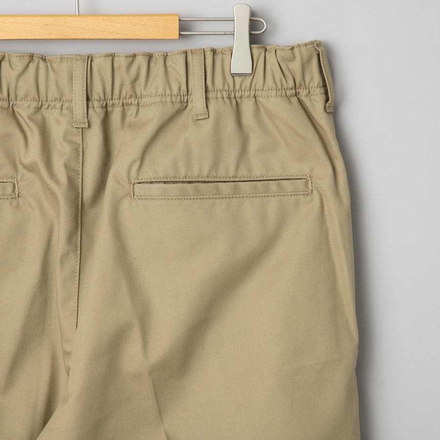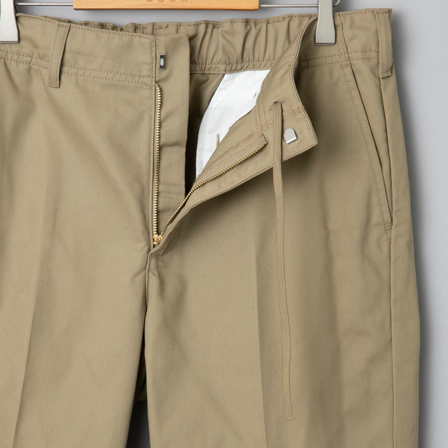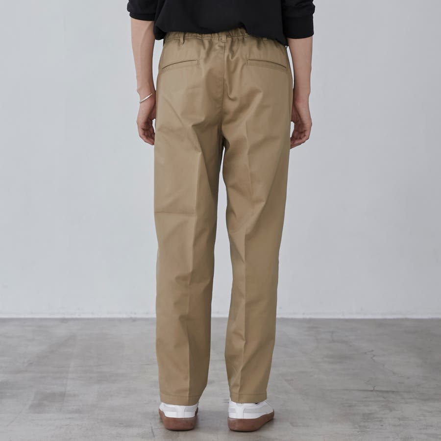 また、フロントホック仕様でセンタープレス入りとキレイ見えしつつも、ウエストのバック部分はゴム仕様、内側にはドローコード入りで調整可能と快適な穿き心地が魅力。