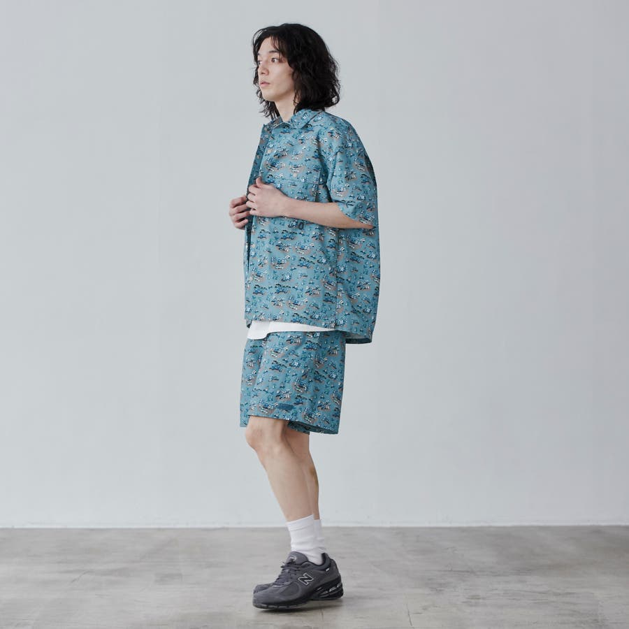 シャカシャカとしたナイロン素材でしっかりとした着用感のある柄シャツです。