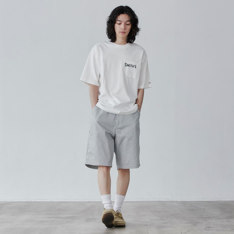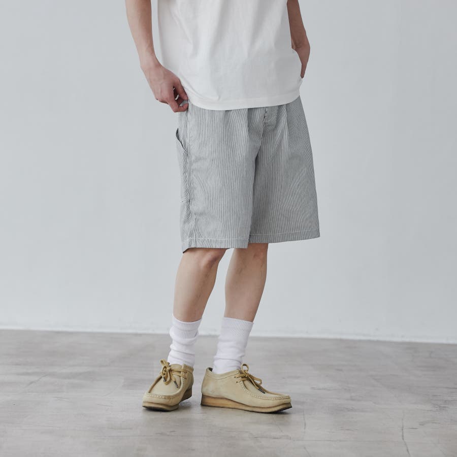 SMITHEに別注したワークショーツ。シャツと同素材でセットアップでも着用が可能。