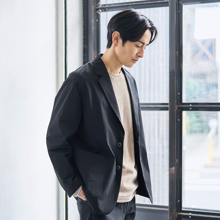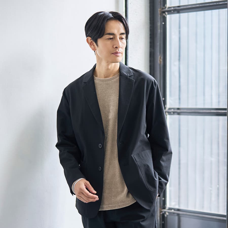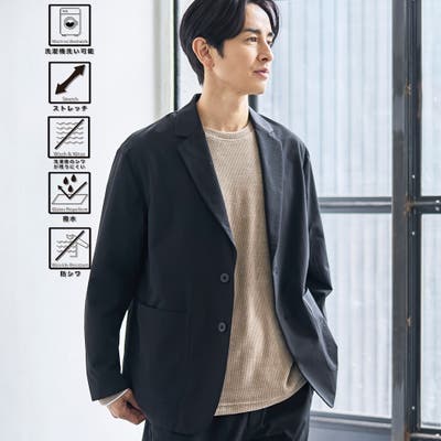 縦横に伸びる2wayストレッチ、撥水、防シワといったマルチ機能付きのシングルジャケット。