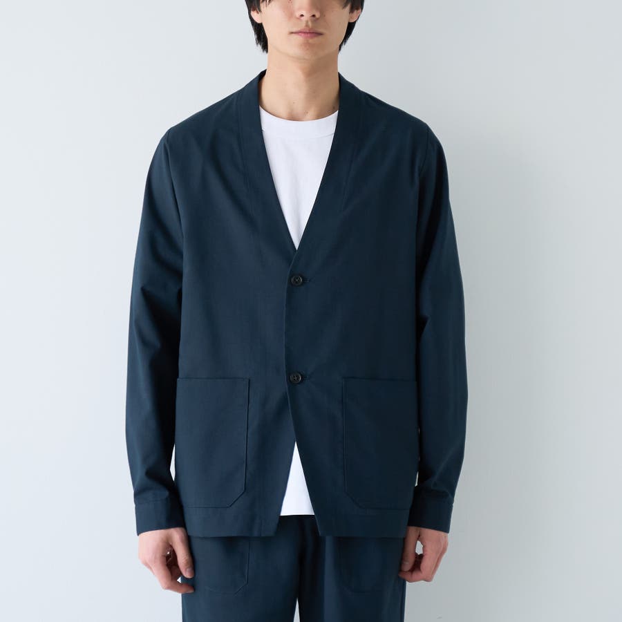 ハイブリッドリネン ノーカラージャケット【吸水速乾・防シワ・UVカット】