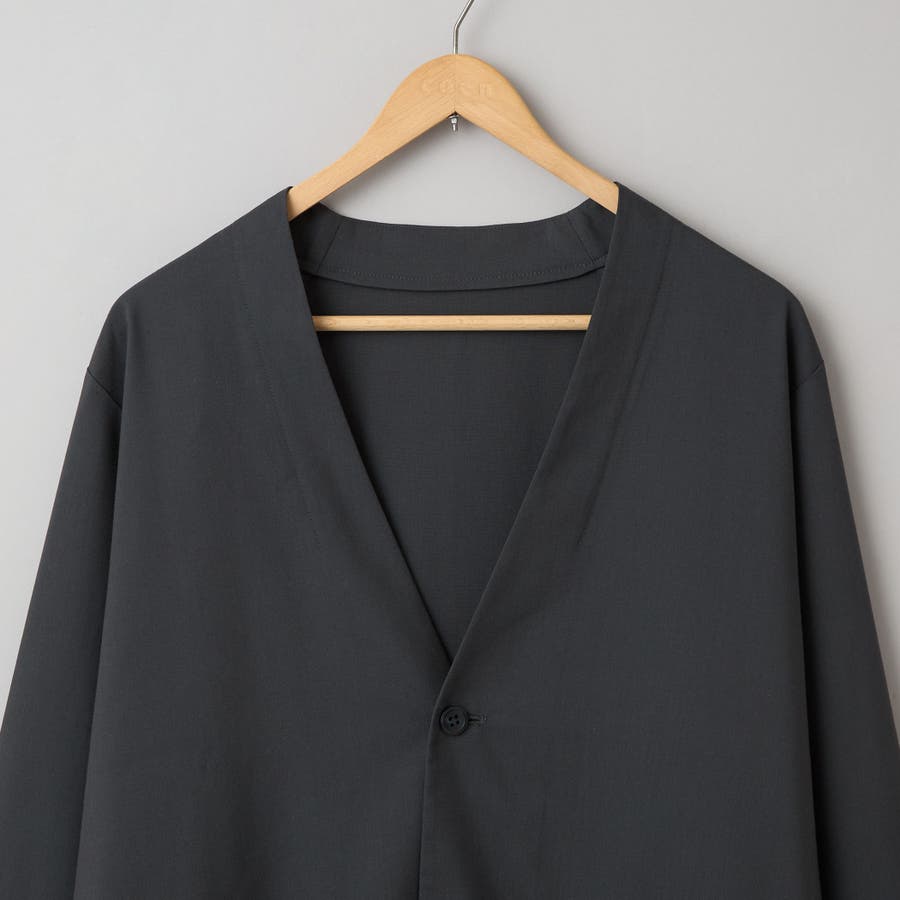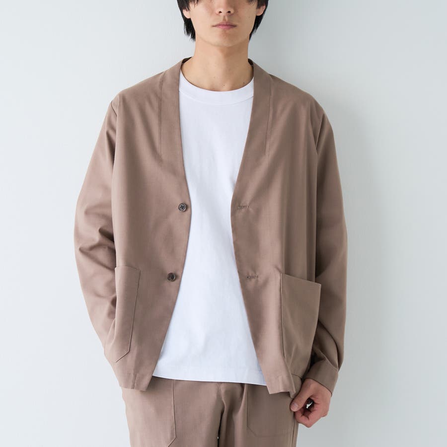 〇これからのシーズンに嬉しい、吸水速乾・防シワ・UVカットを備えたマルチ機能付きノーカラージャケット。